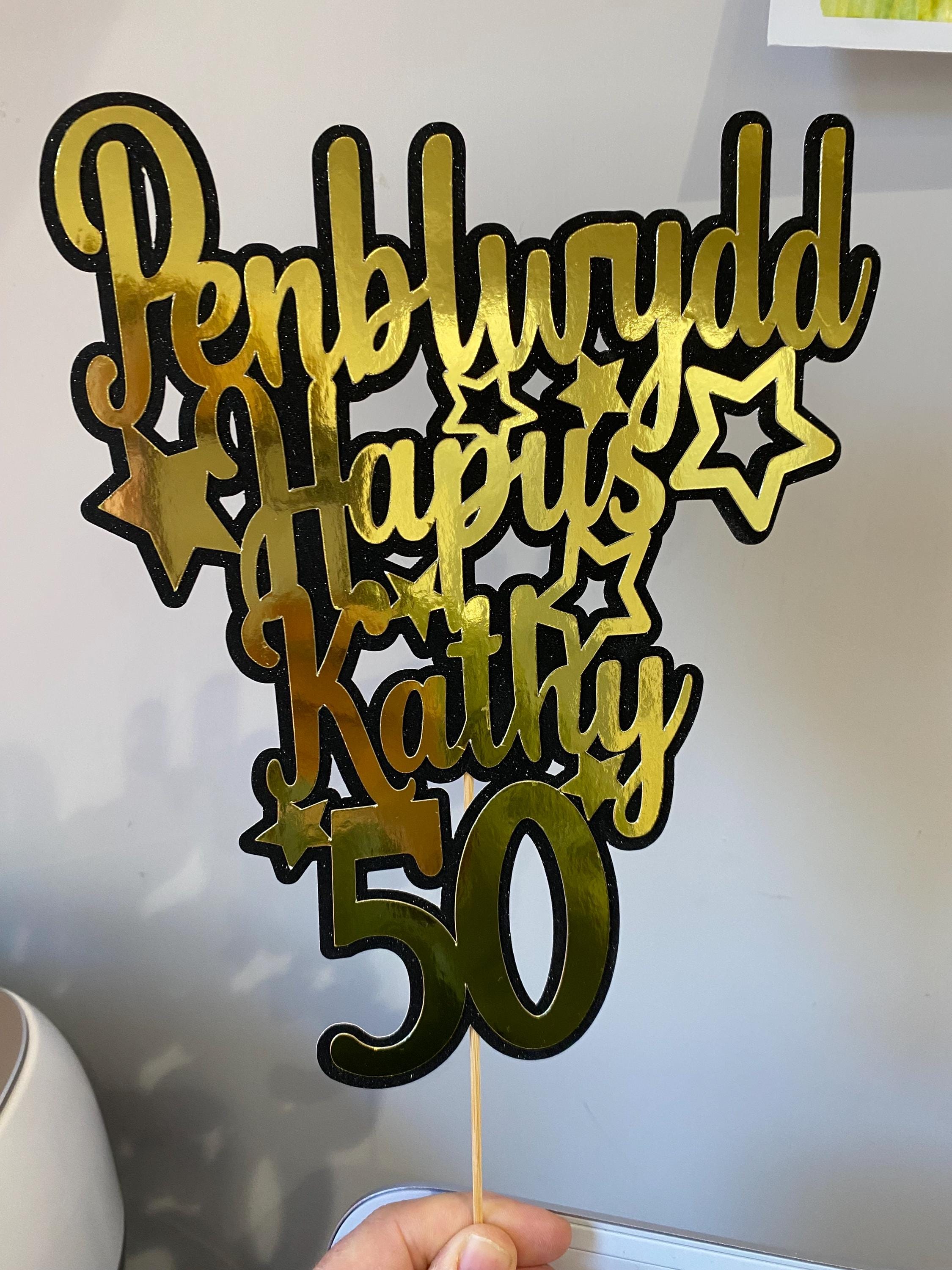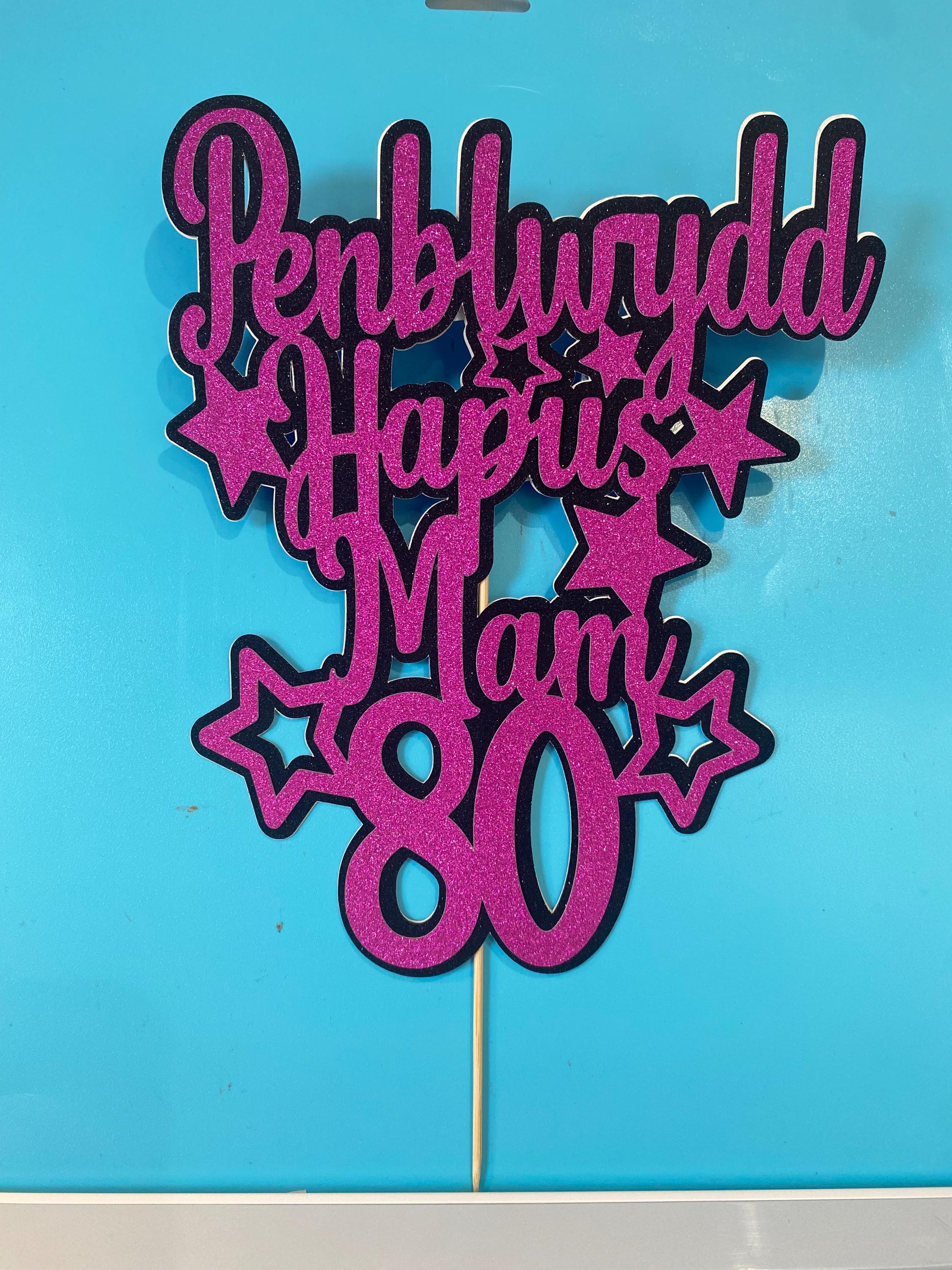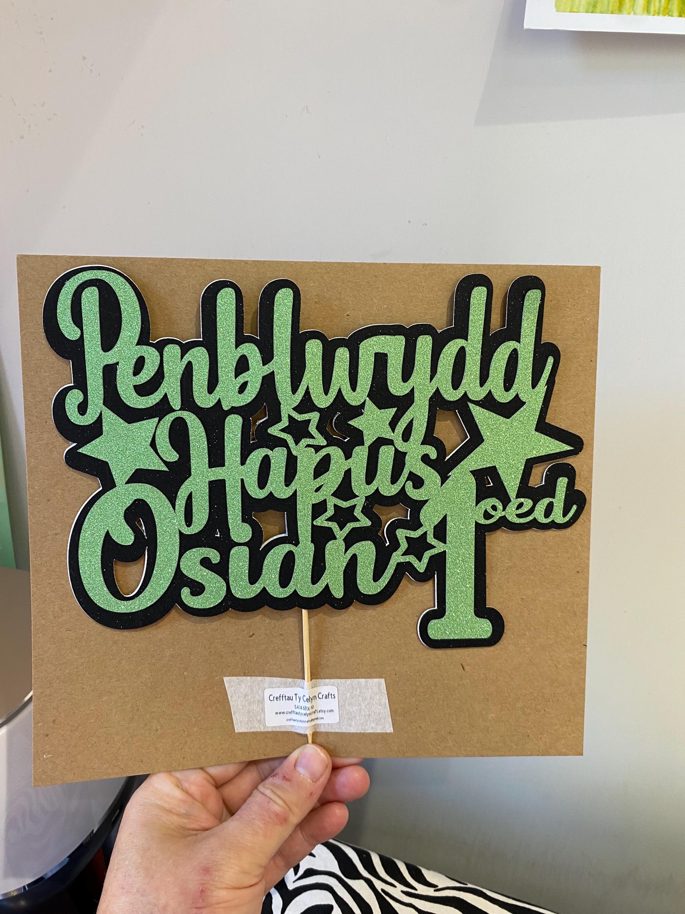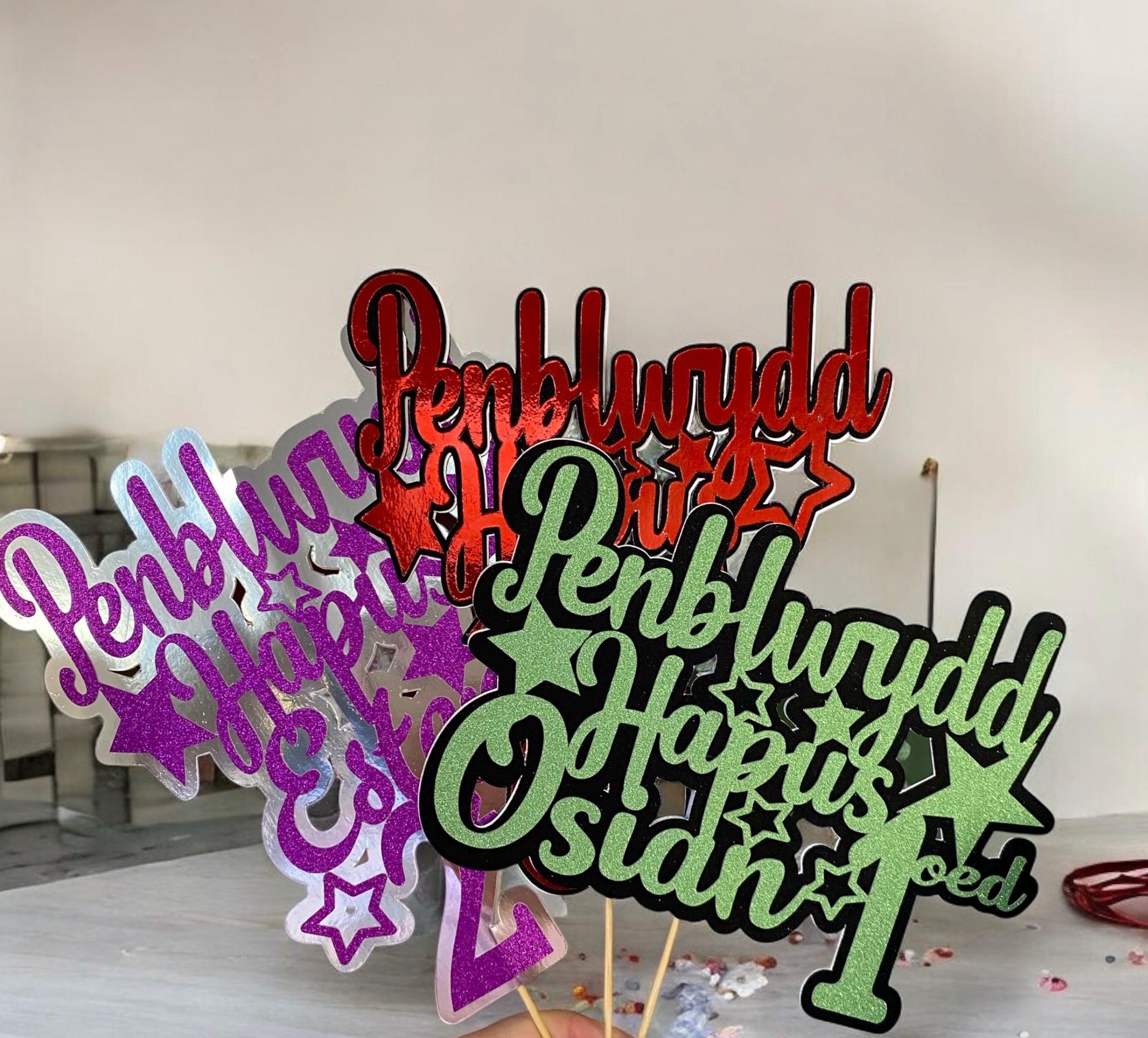 Penblwydd Hapus Personalised cake topper / ‘Topper’ cacen wedi ei bersonaleiddio