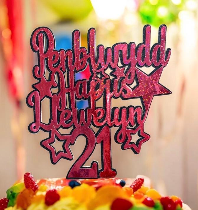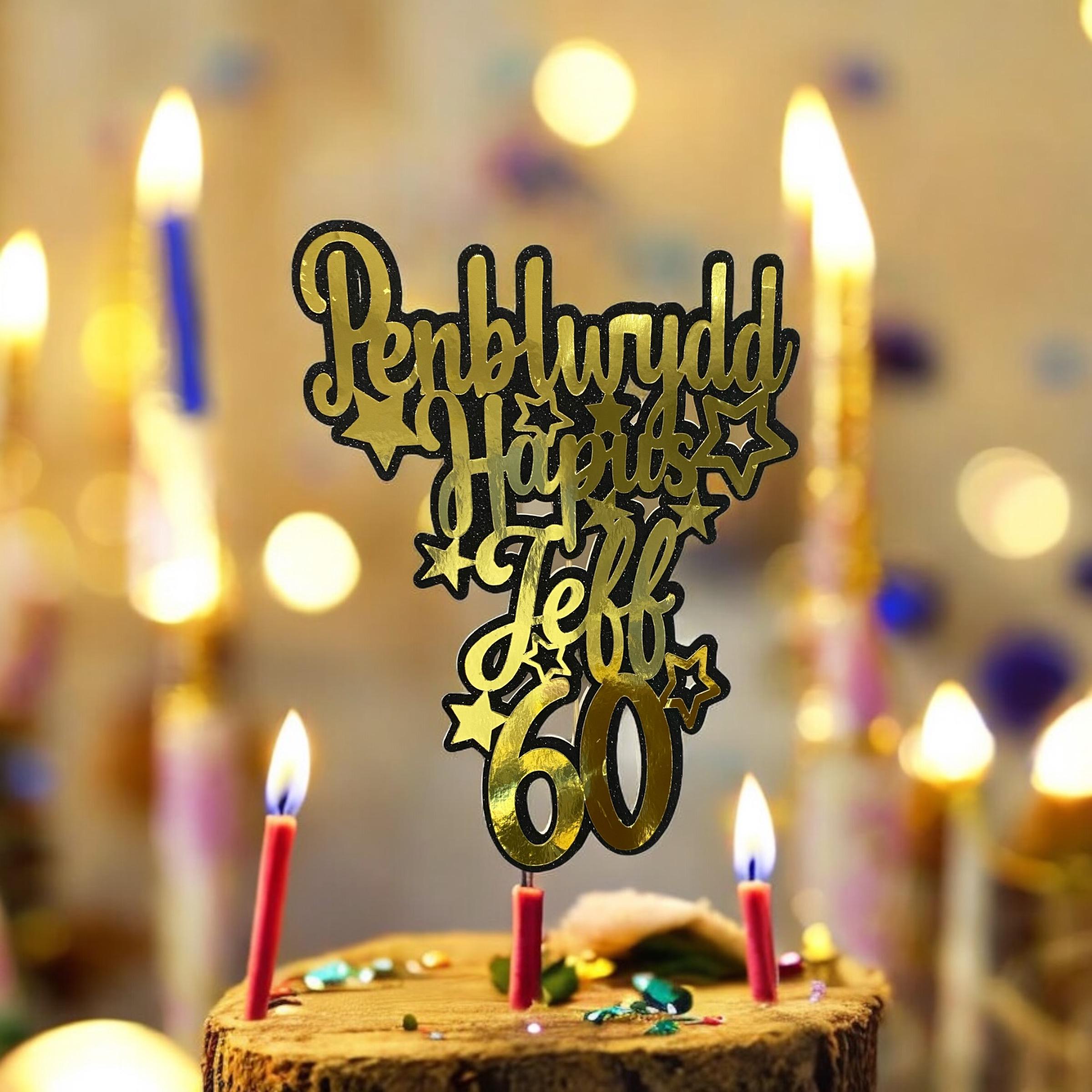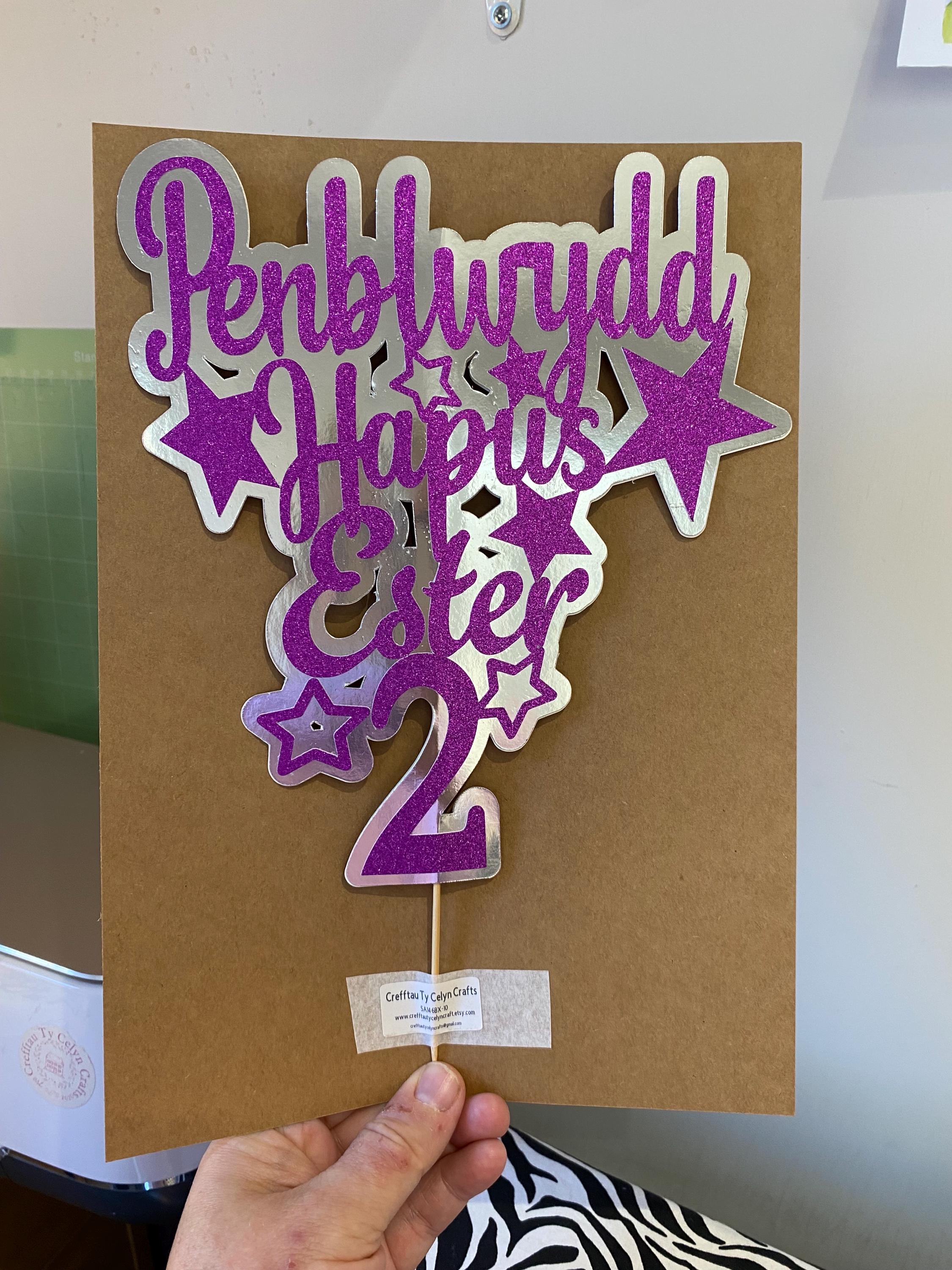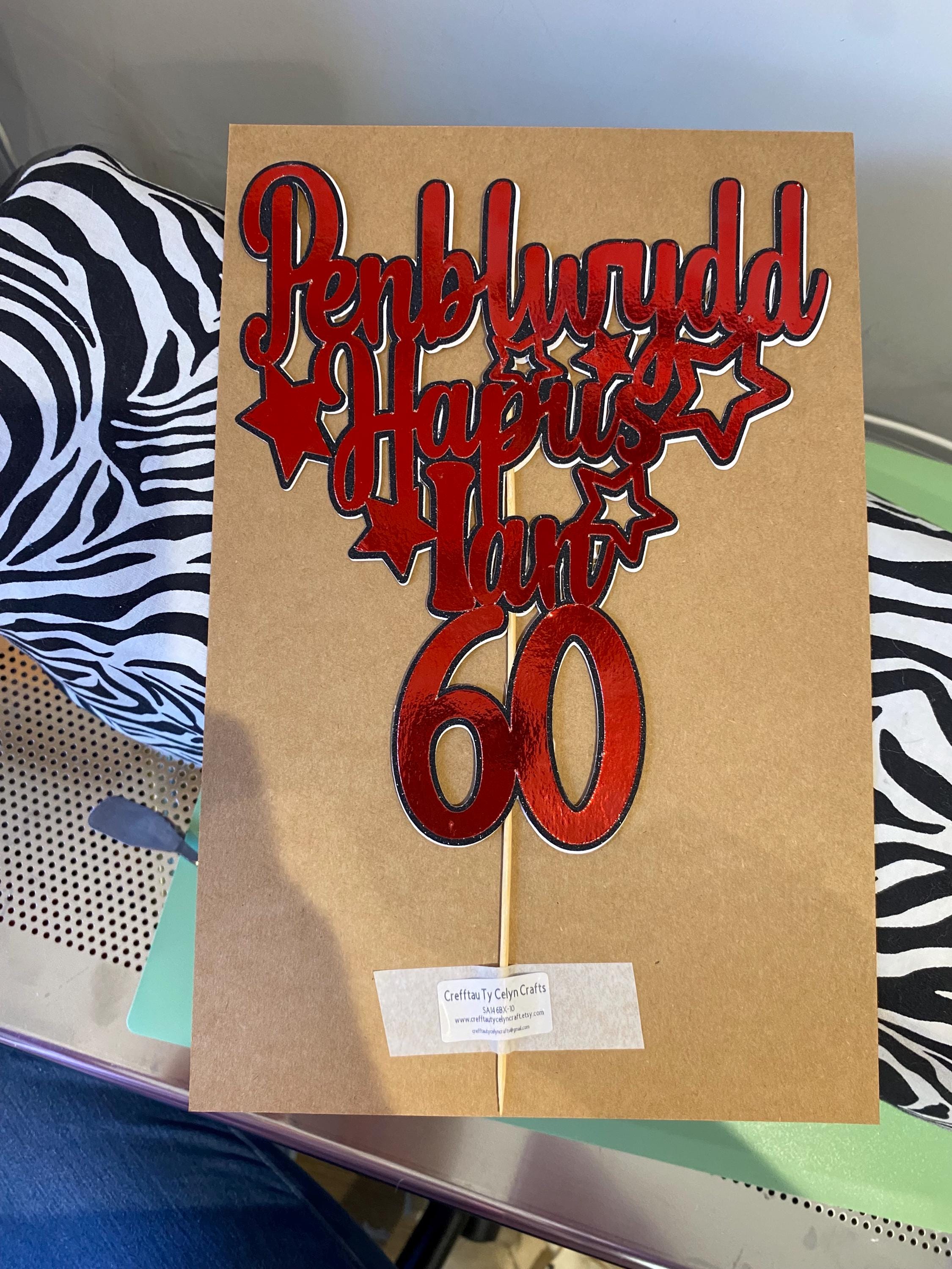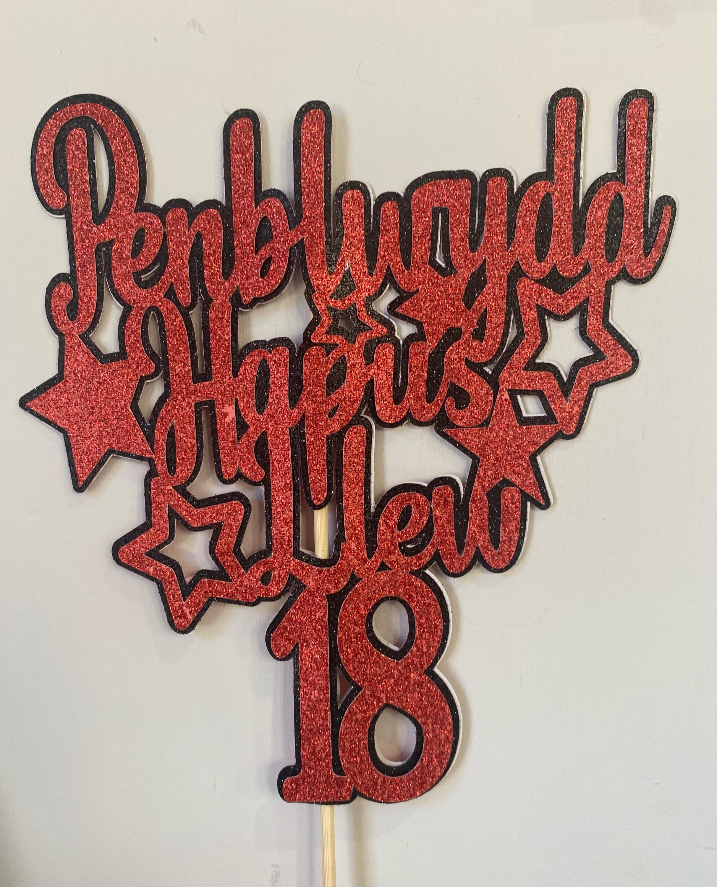 Penblwydd Hapus Personalised cake topper / ‘Topper’ cacen wedi ei bersonaleiddio