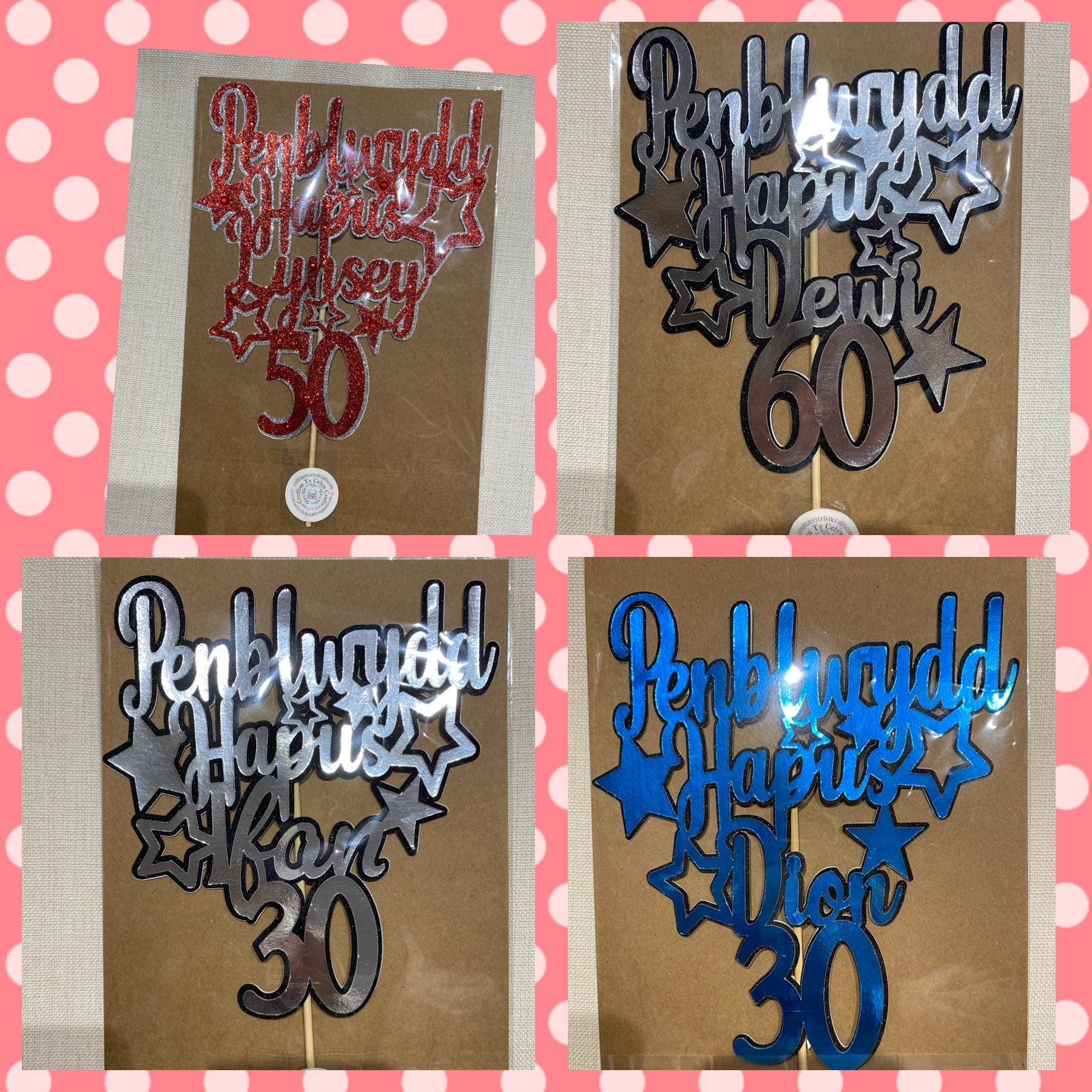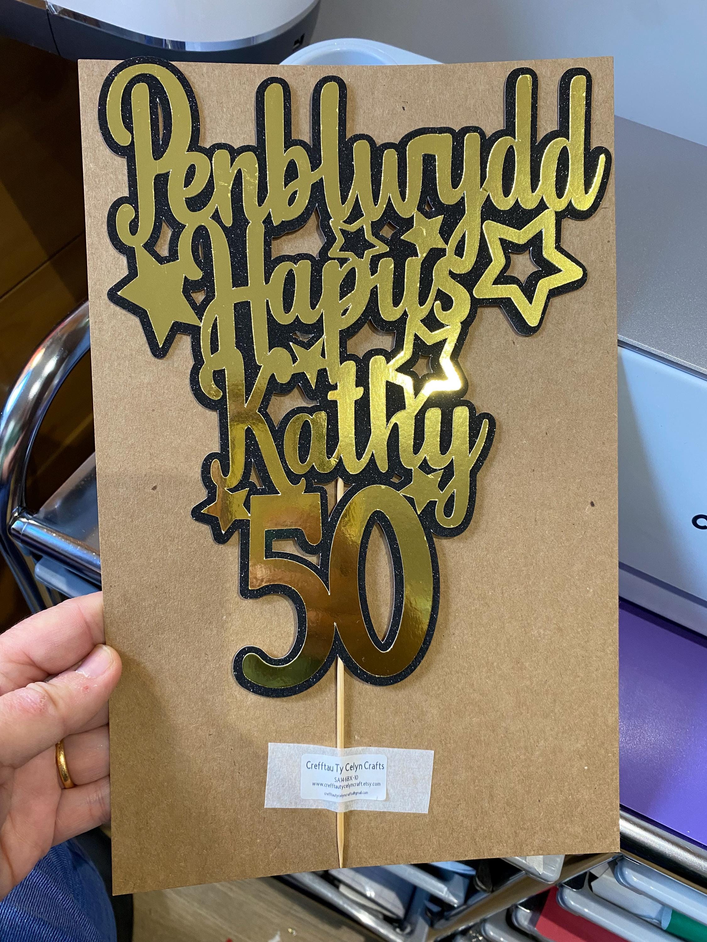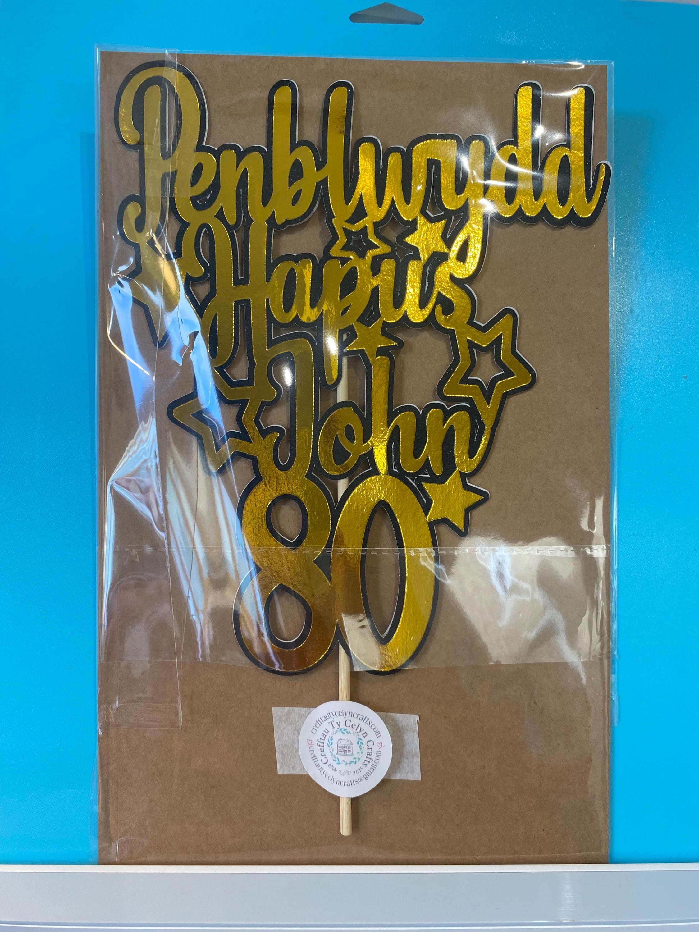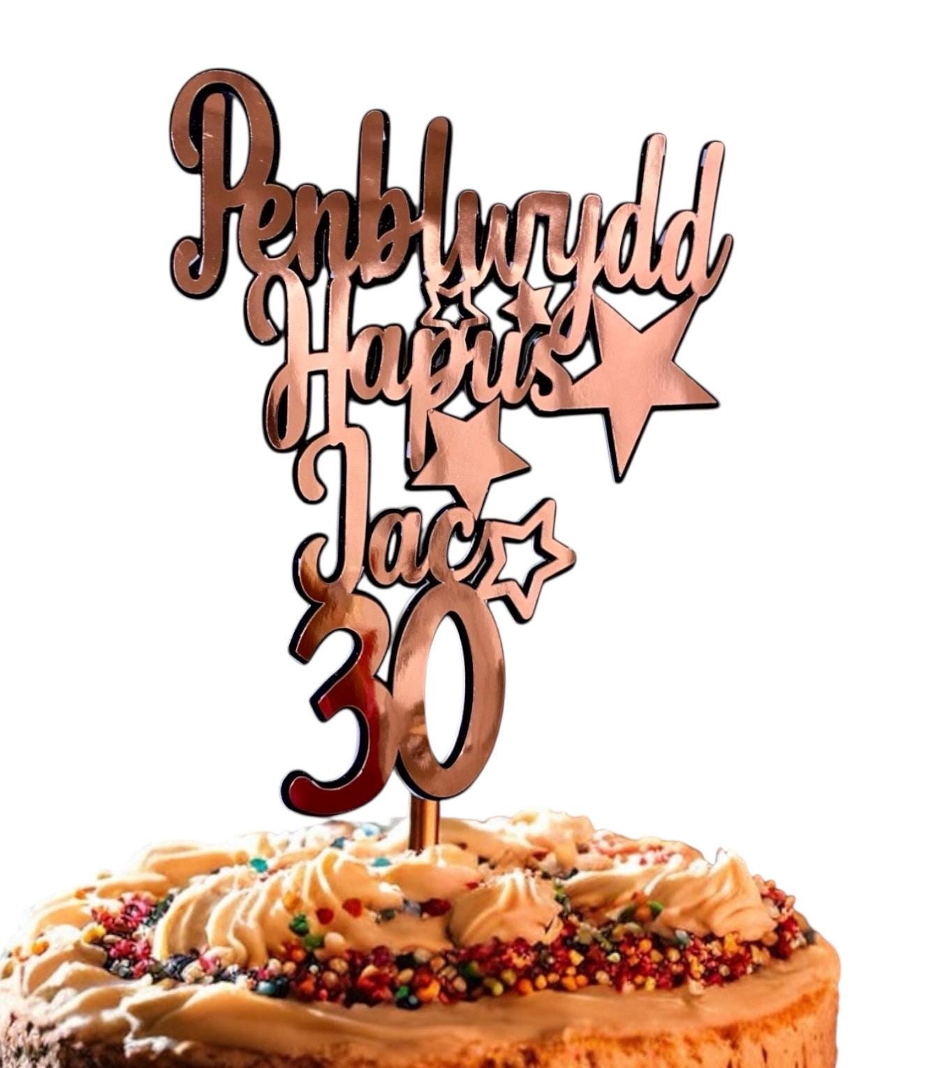 Penblwydd Hapus Personalised cake topper / ‘Topper’ cacen wedi ei bersonaleiddio