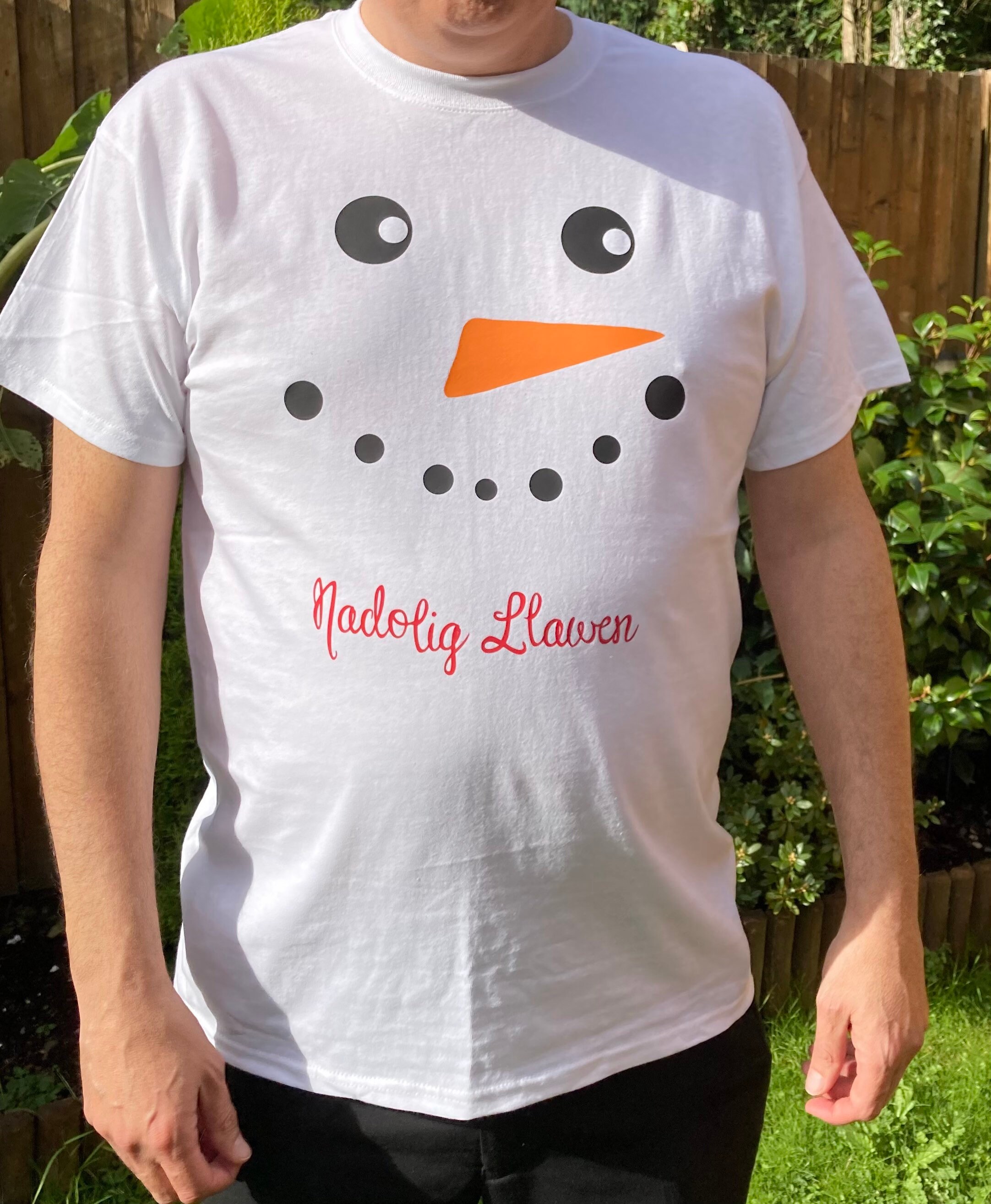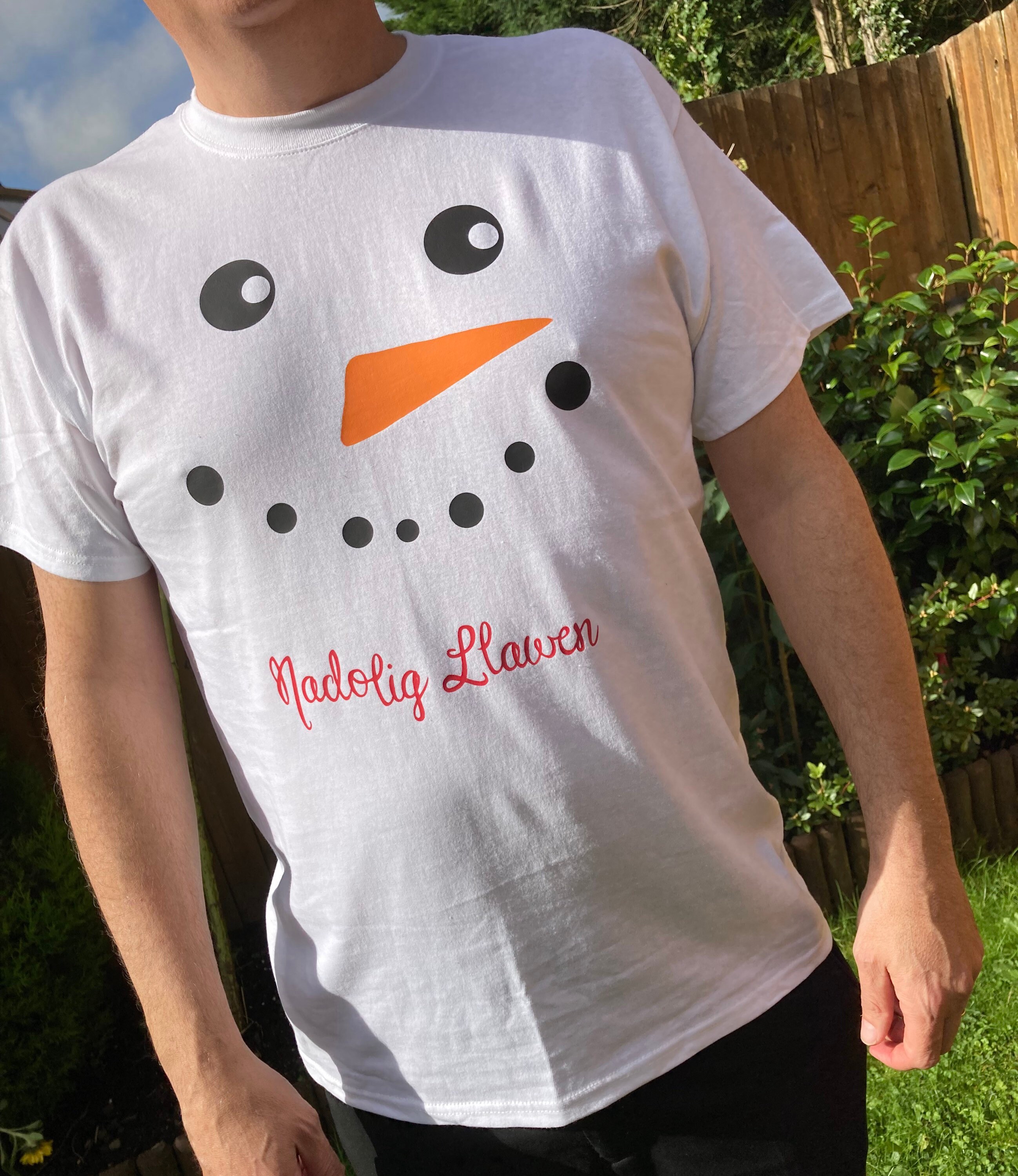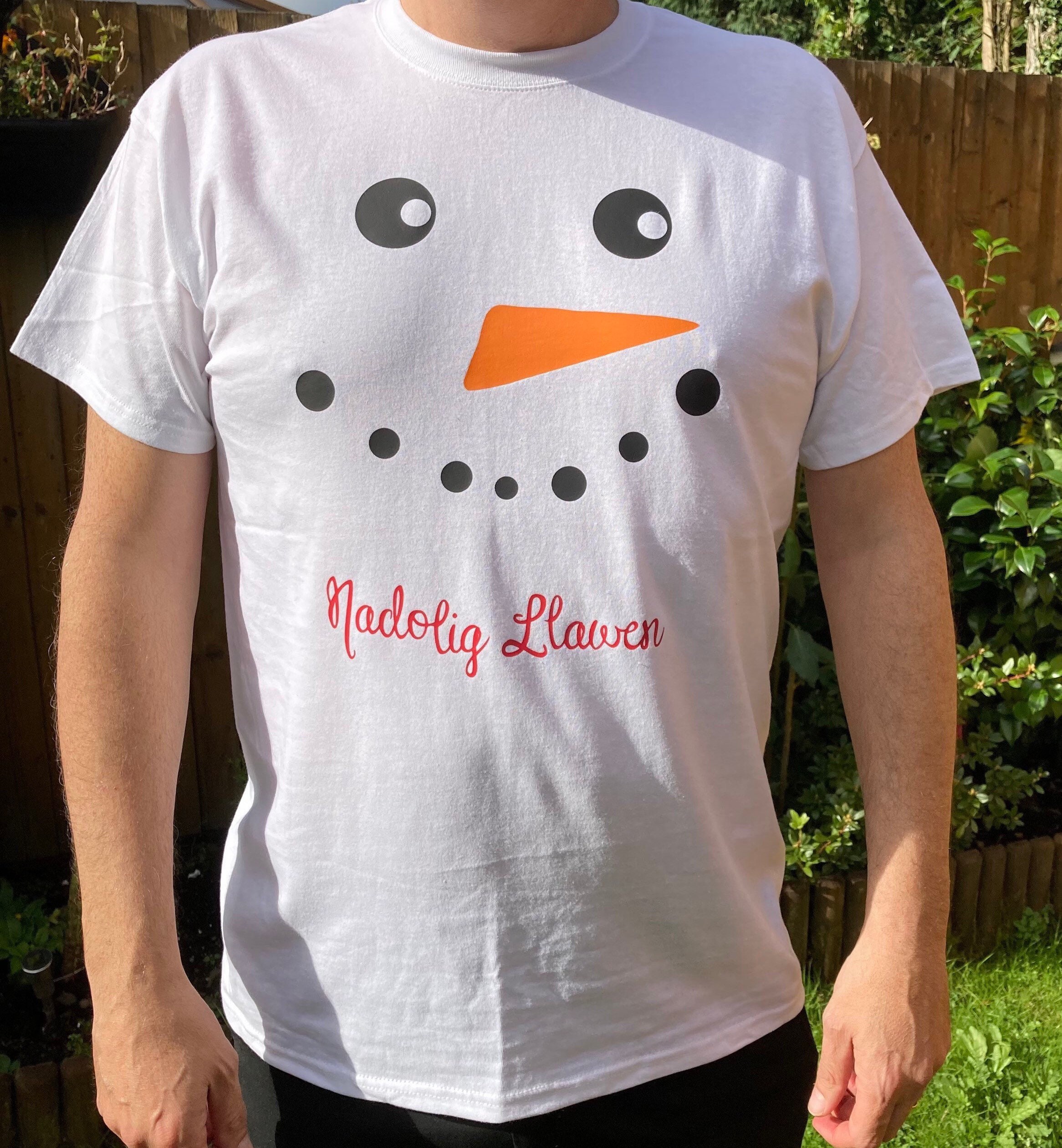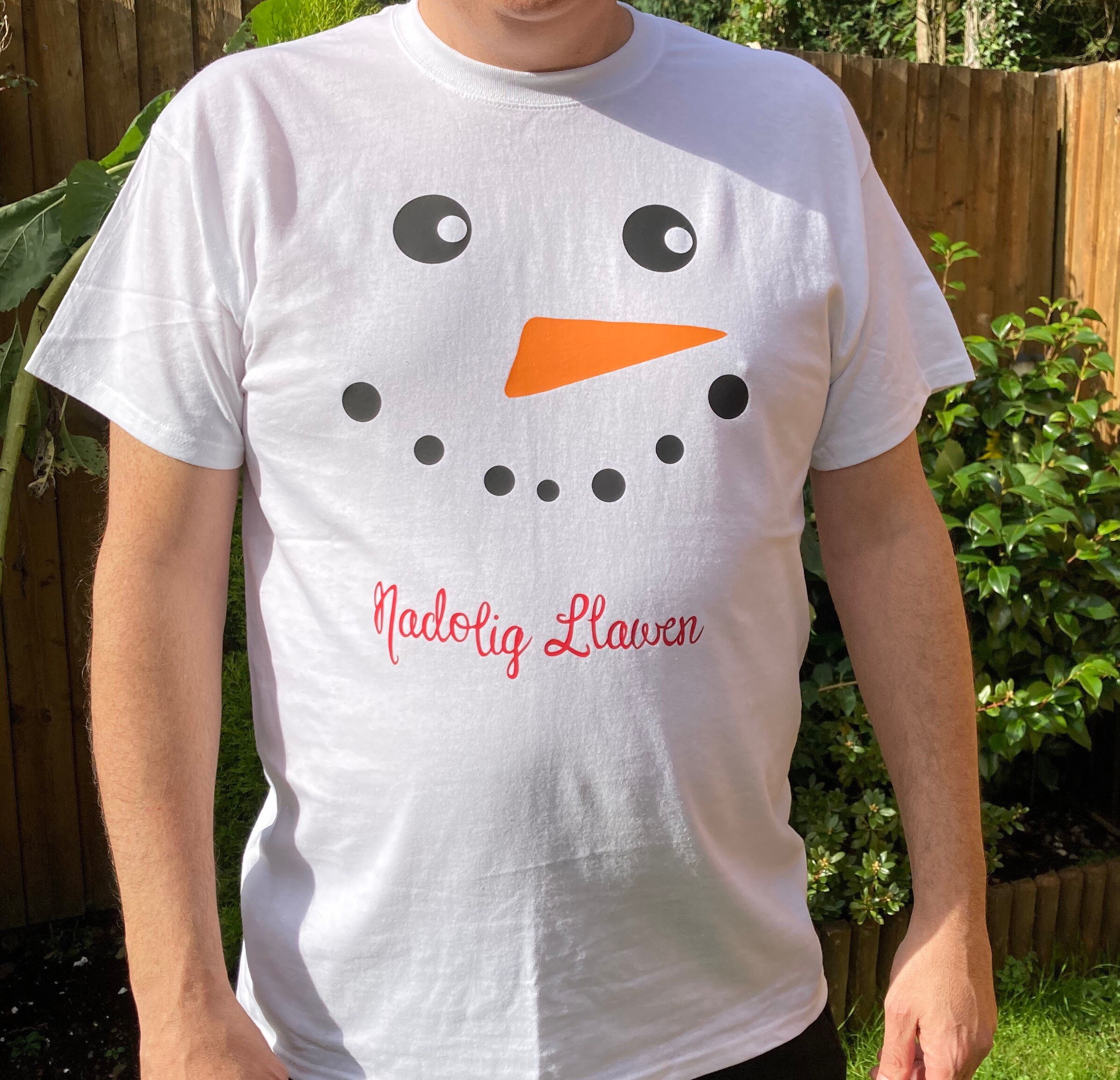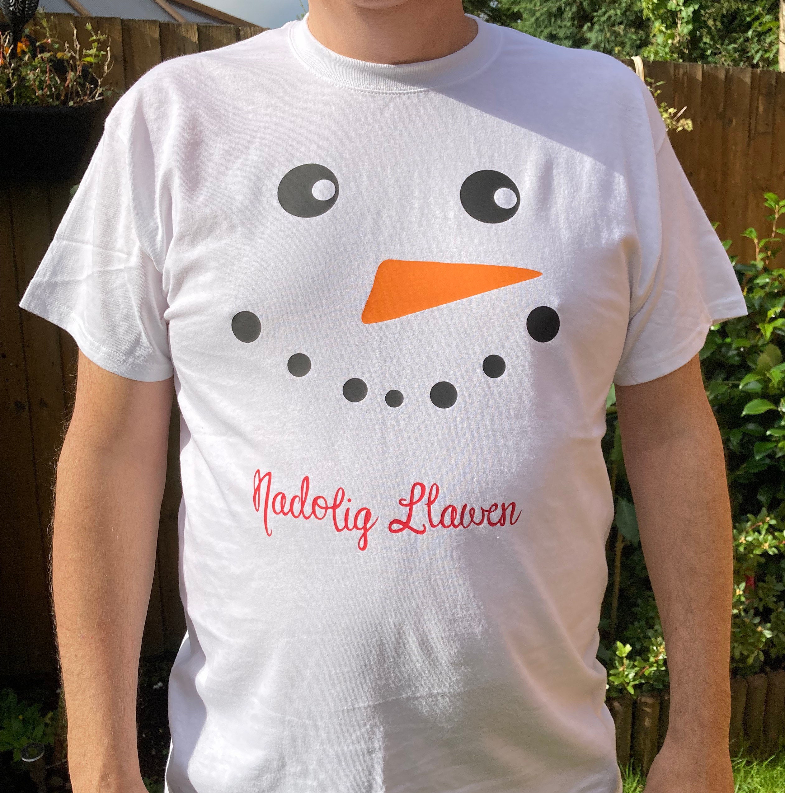 Snowman Christmas T-shirt / Crys -T Dyn Eira Nadolig Llawen , / Christmas T-shirt / Crys T Nadolig