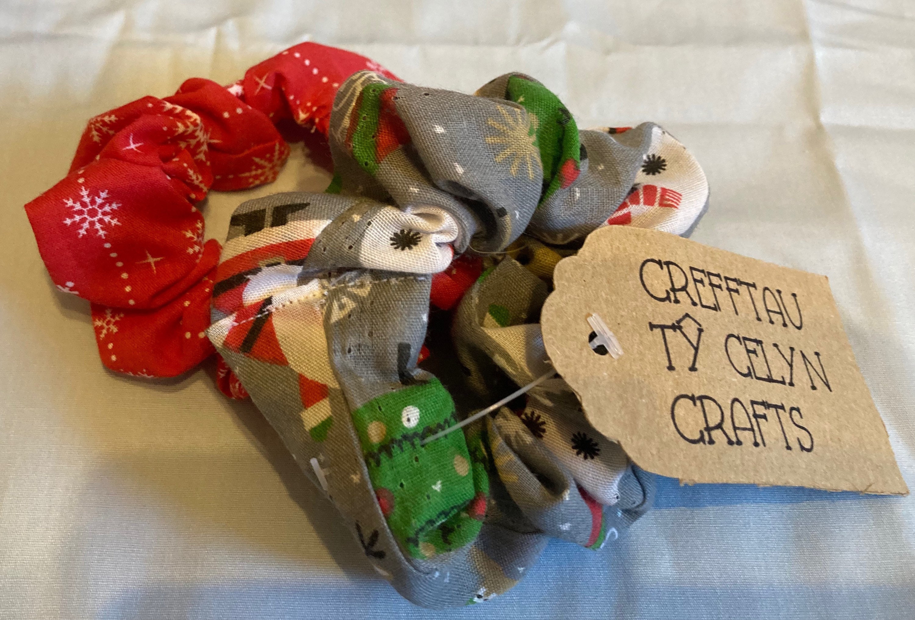 Handmade Christmas scrunches / Sgrynshi Nadolig, wedi ei neud a llaw - dewis o ddyluniad,
