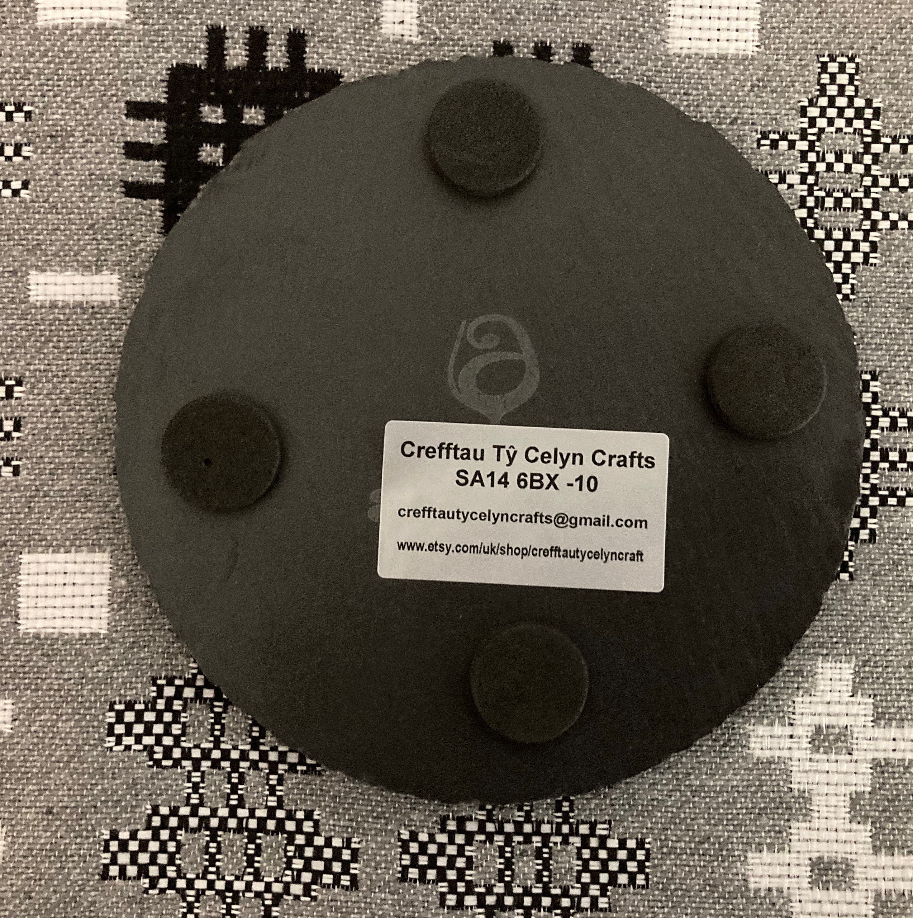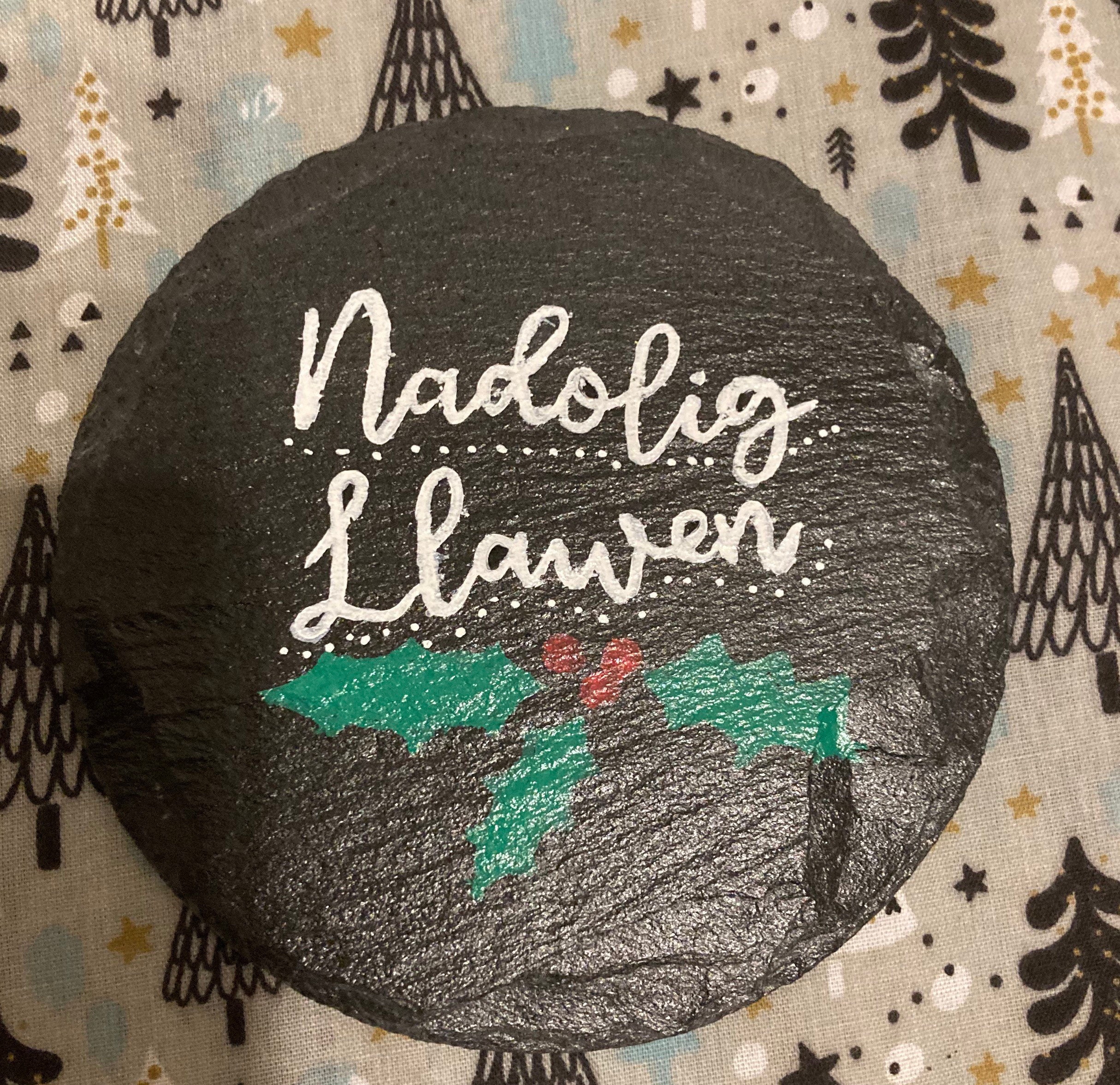 Coasters / mat Llechen Nadolig Llawen . Nadolig Llawen (Merry Christmas) hand decorated slate coaster