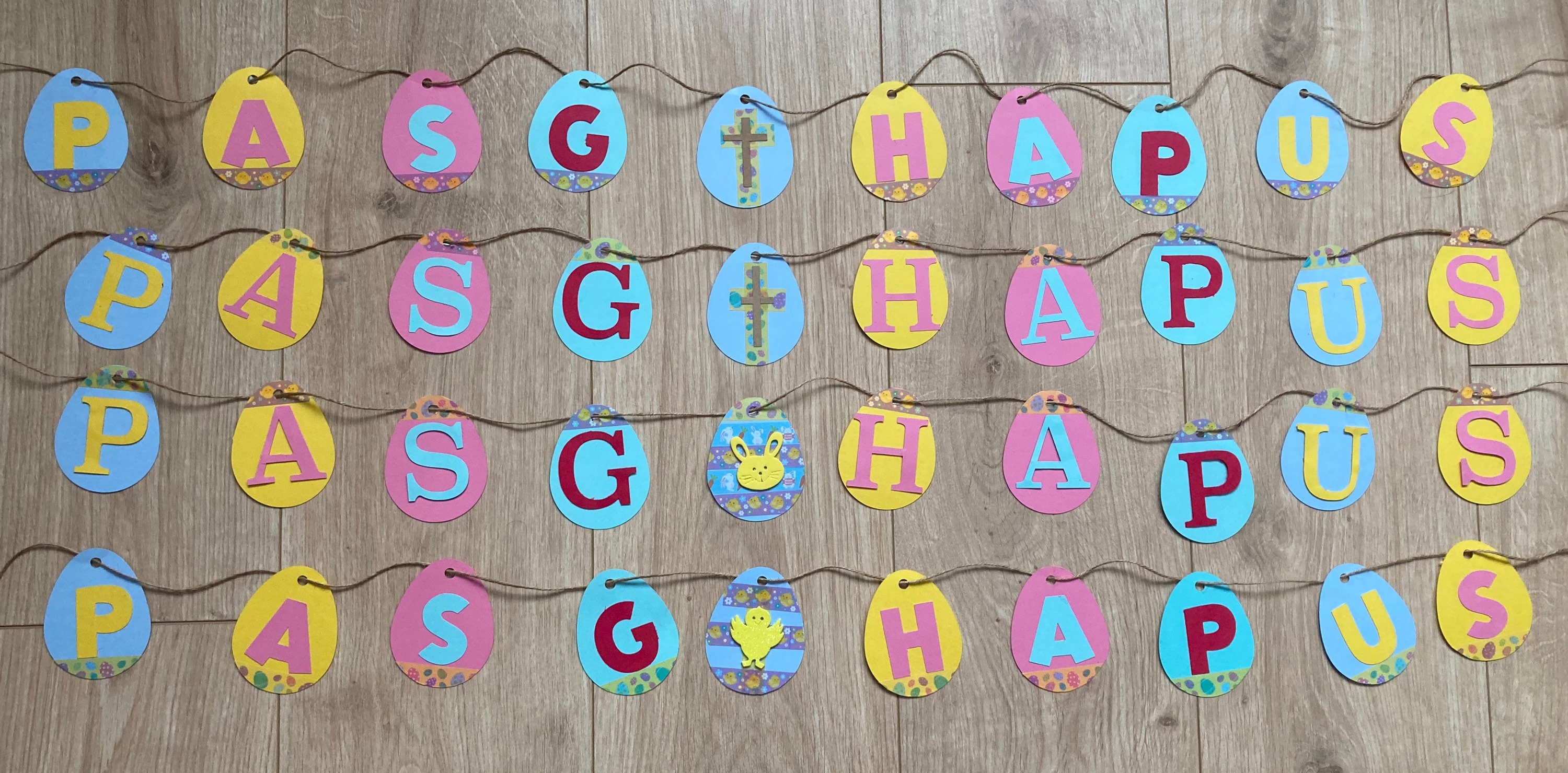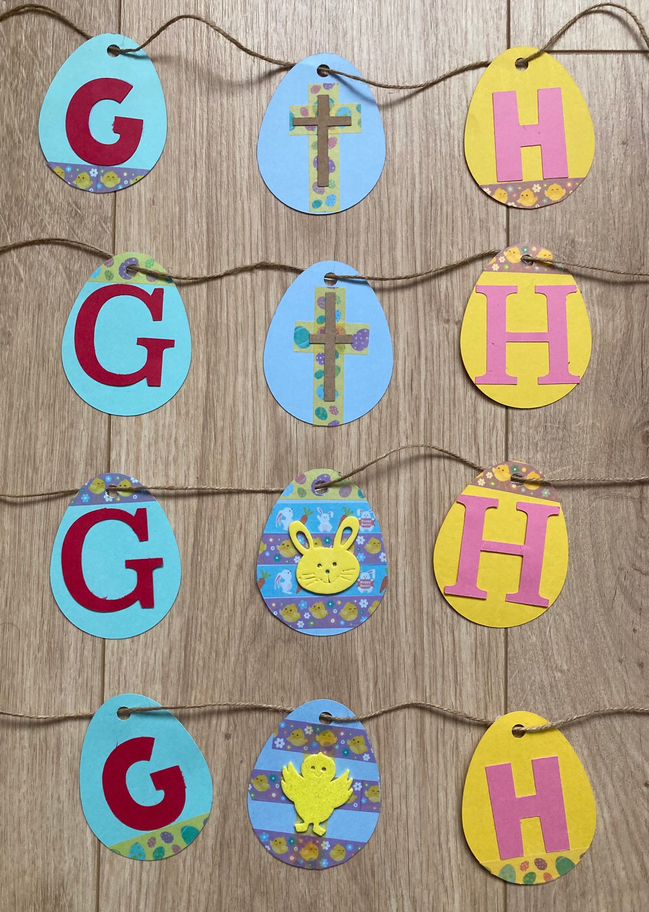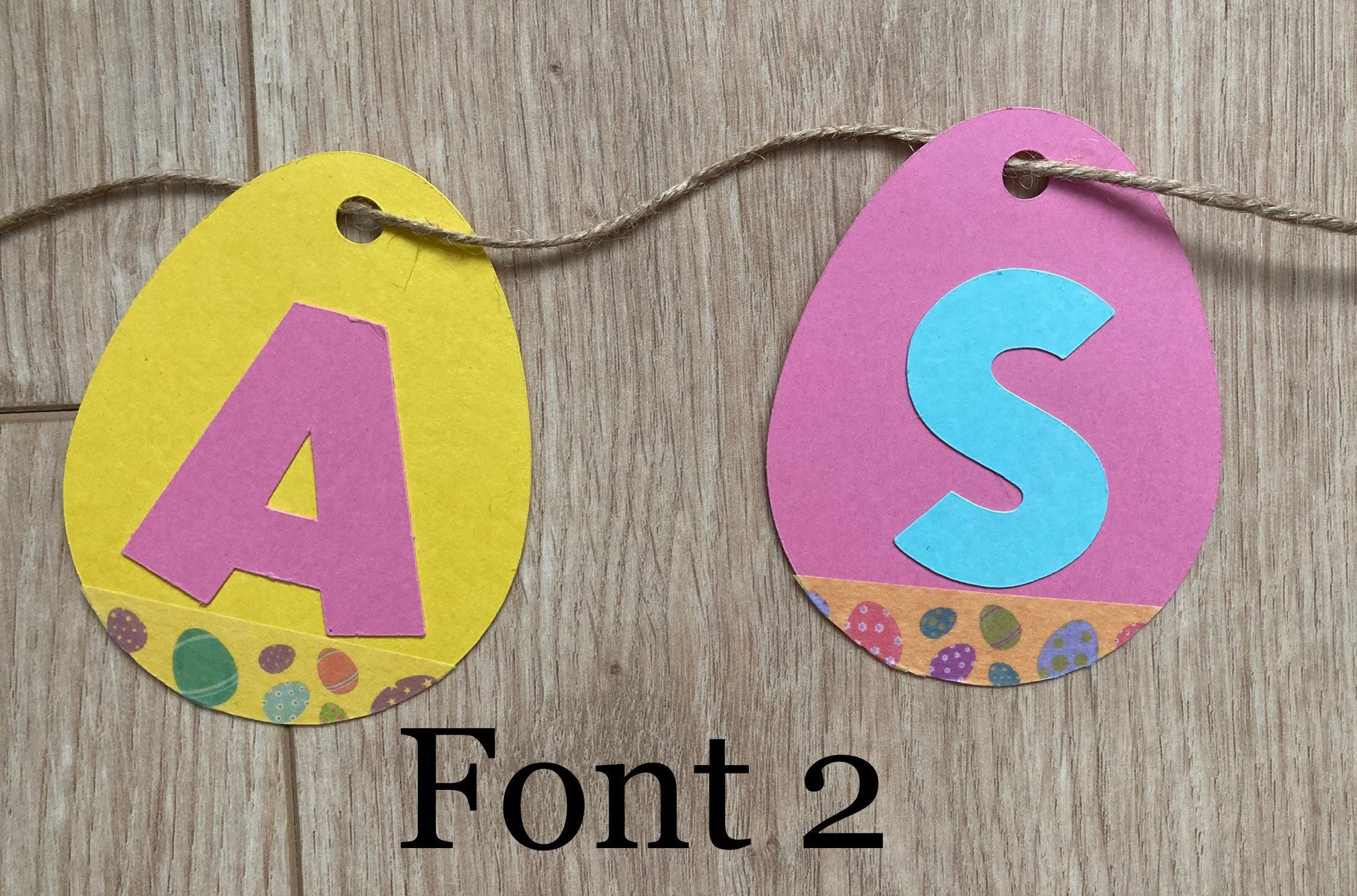 Choice of 2 fonts, & choice of Cross or bunny/chick on the middle egg.