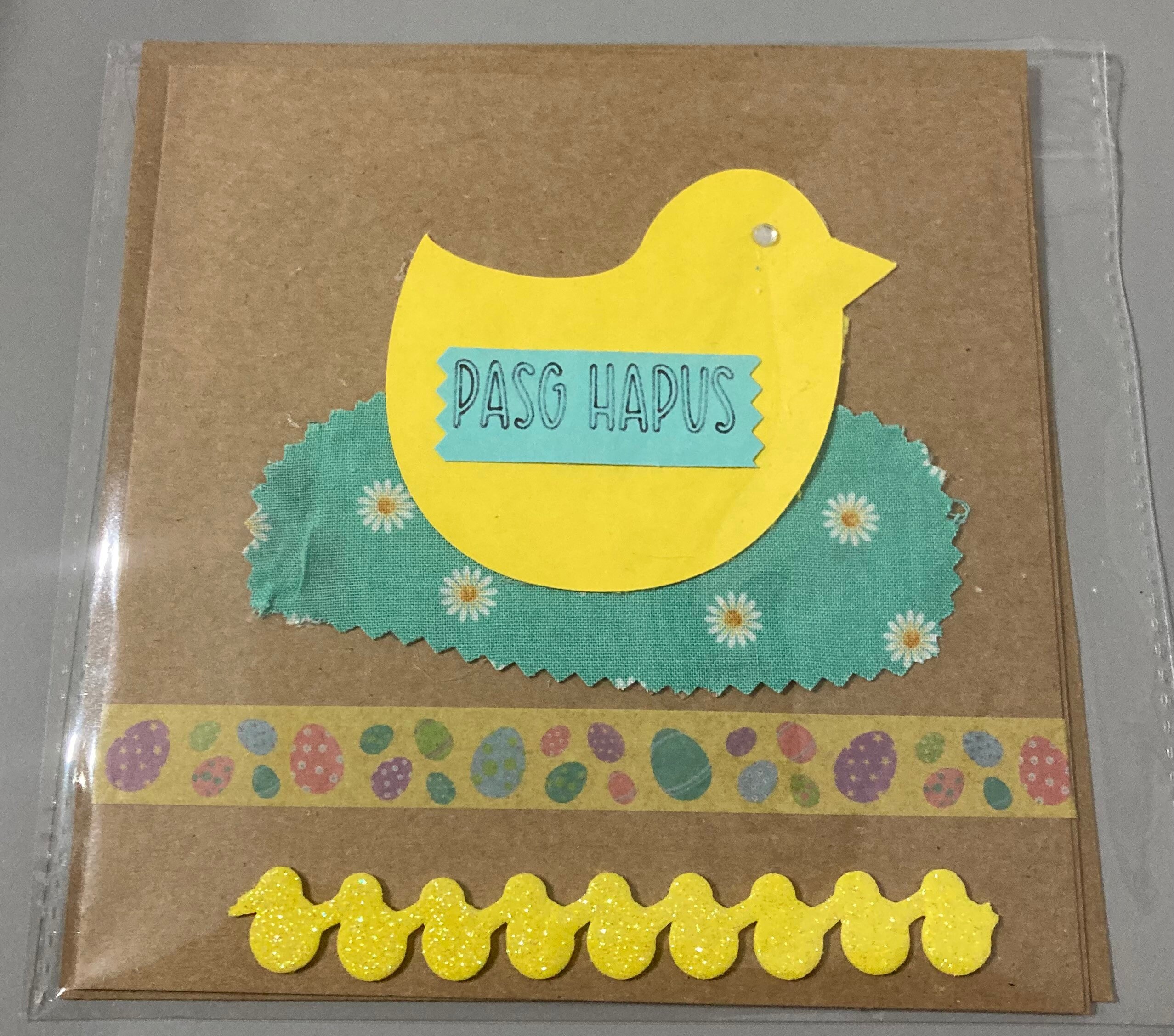 Handmade Easter cards, choice of Pasg Hapus (Welsh) or Happy Easter.