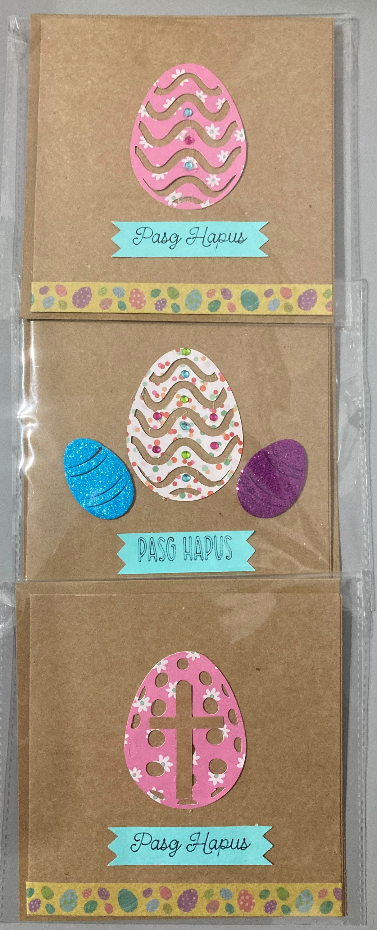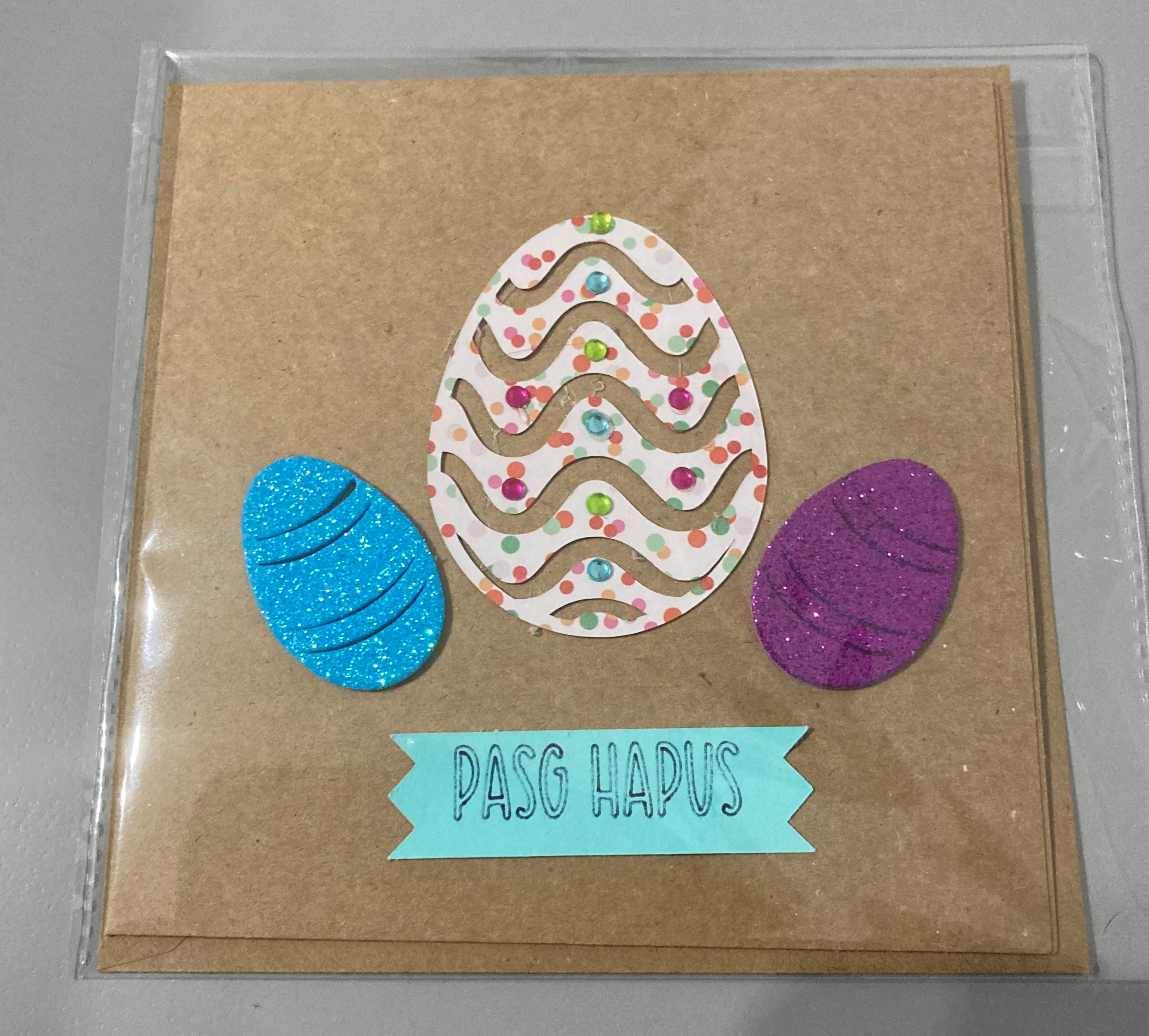 Cardiau Pasg wedi ei neud a llaw.