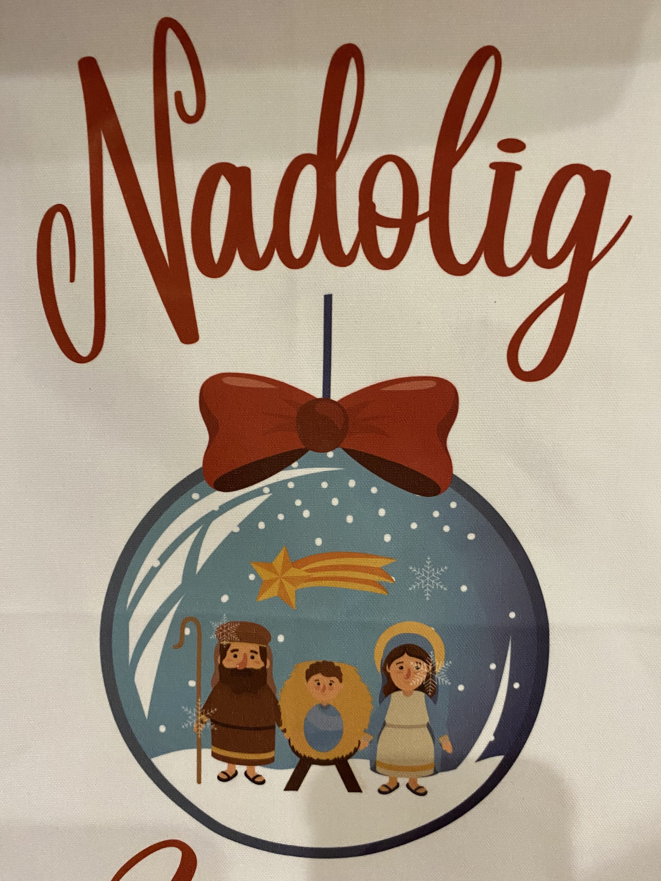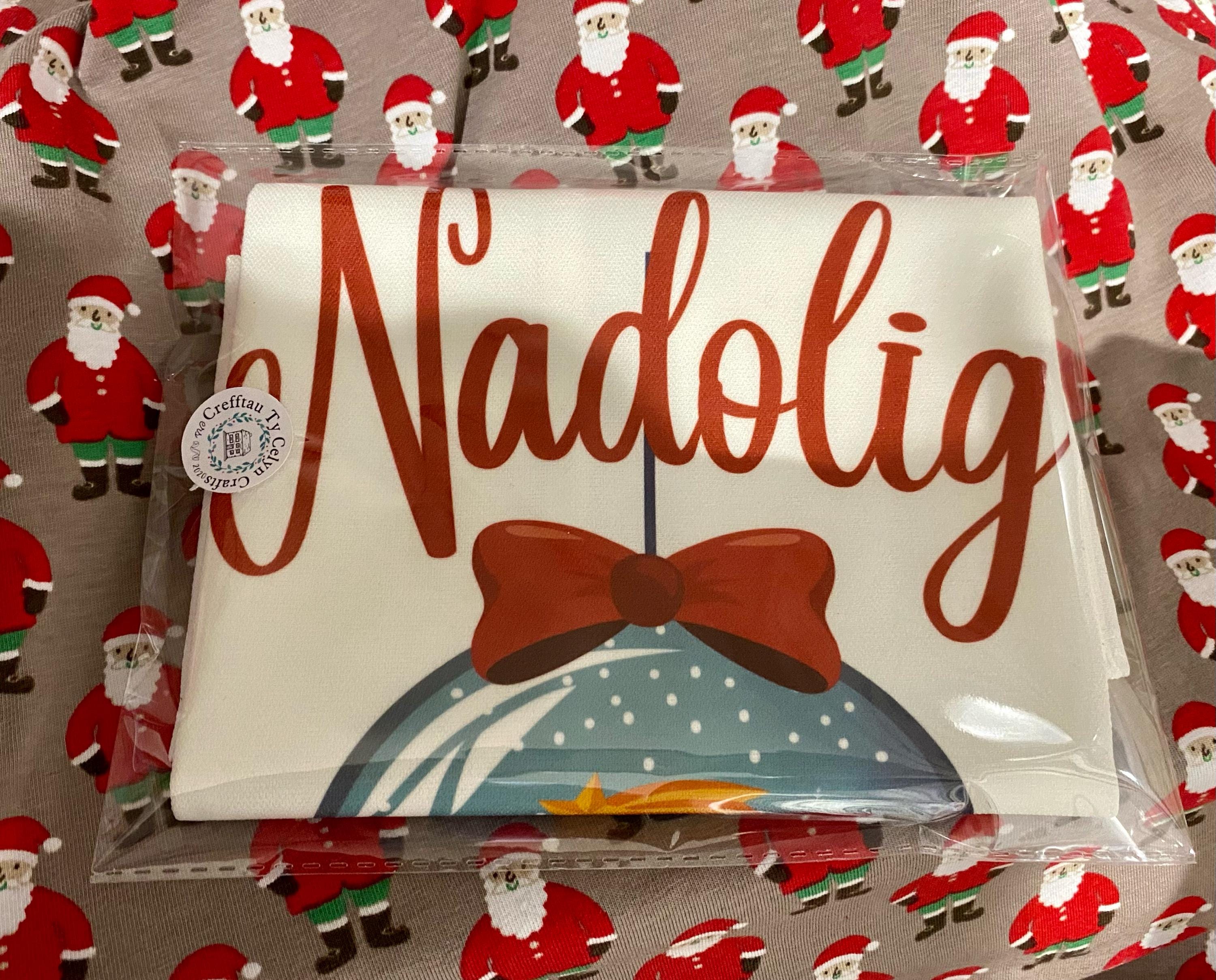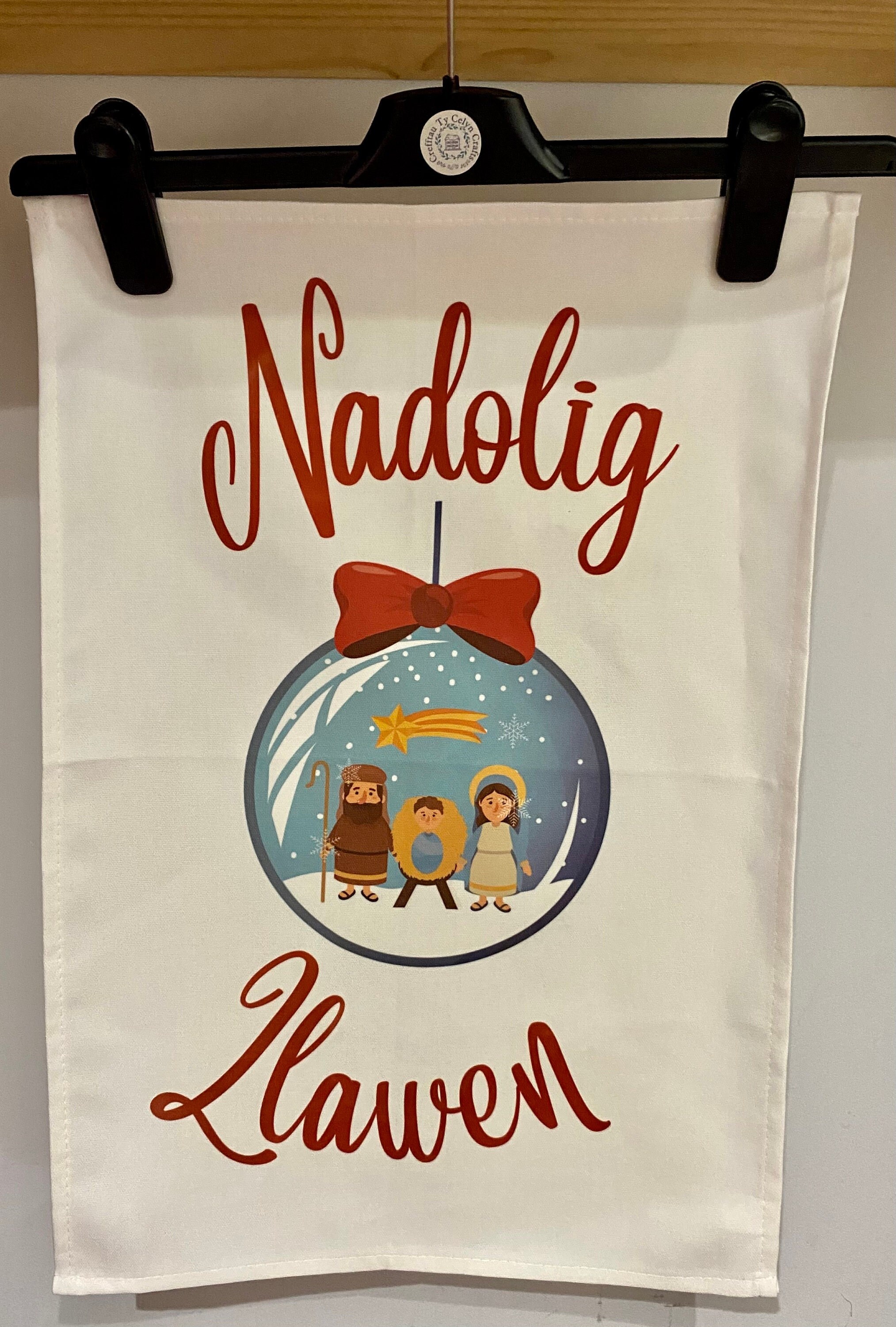 cadach/clwtyn sychu llestri efo dyluniadau nadolig Llawen / Tea towel with Nadolig Llawen Christmas design .