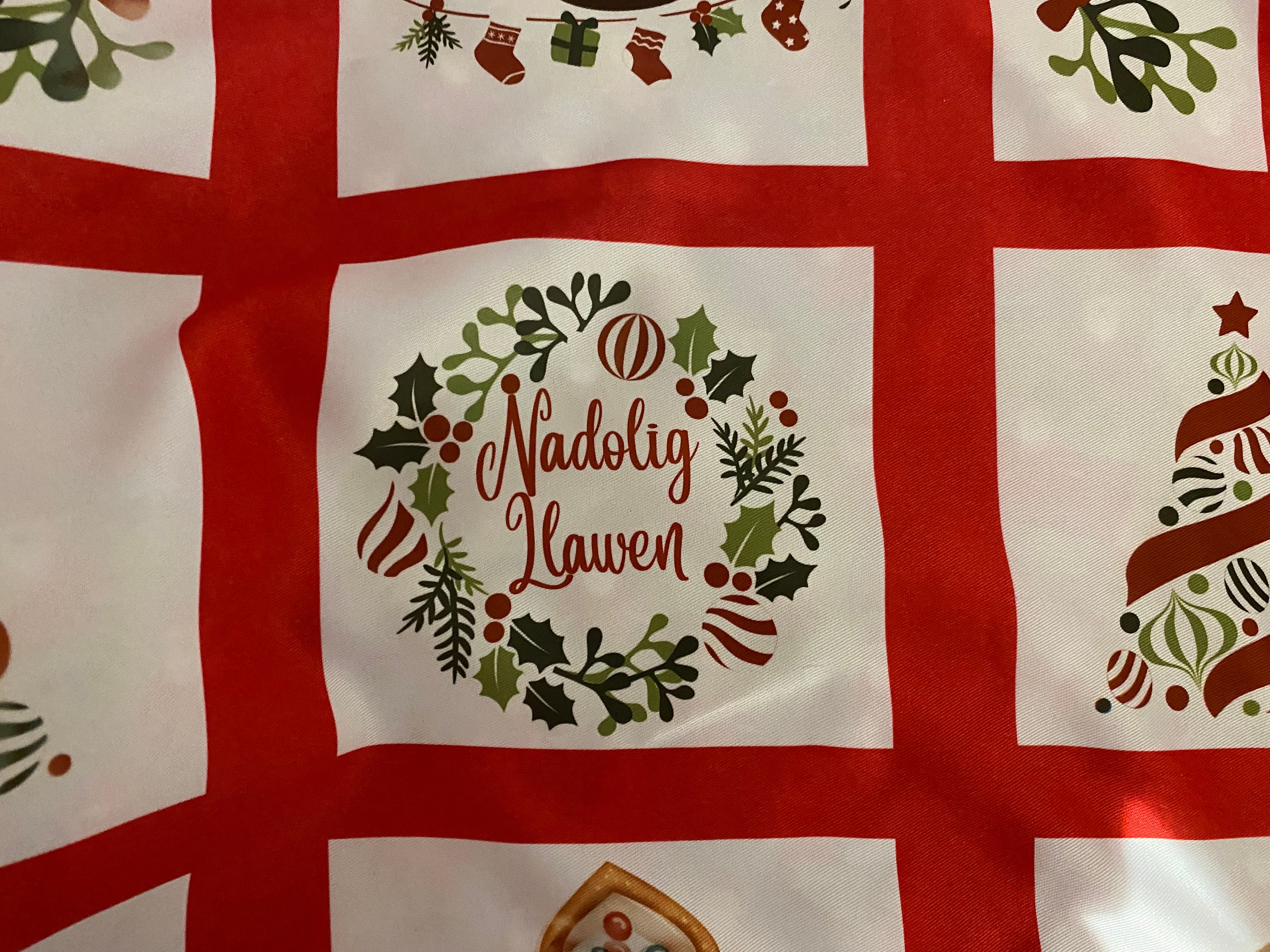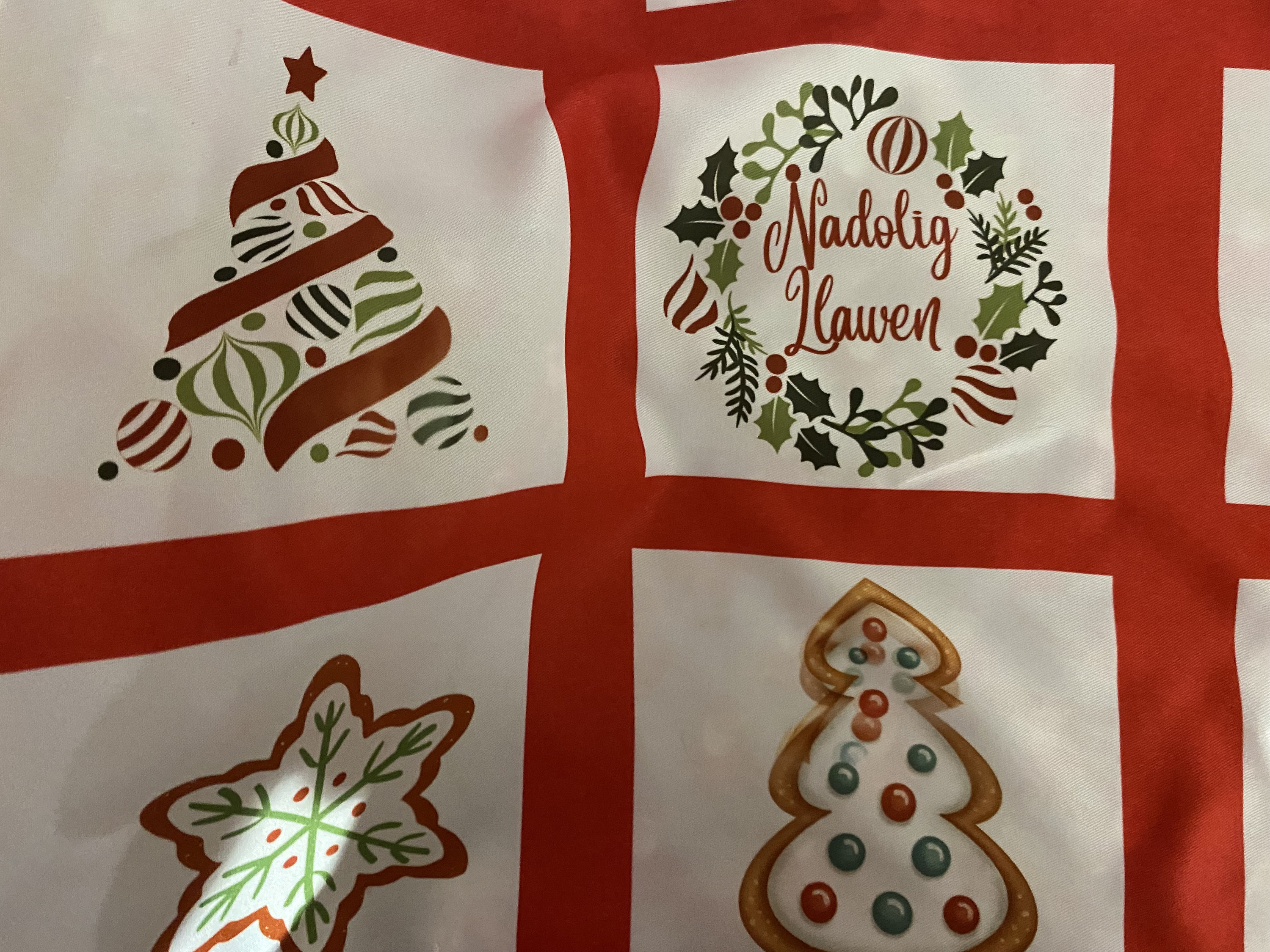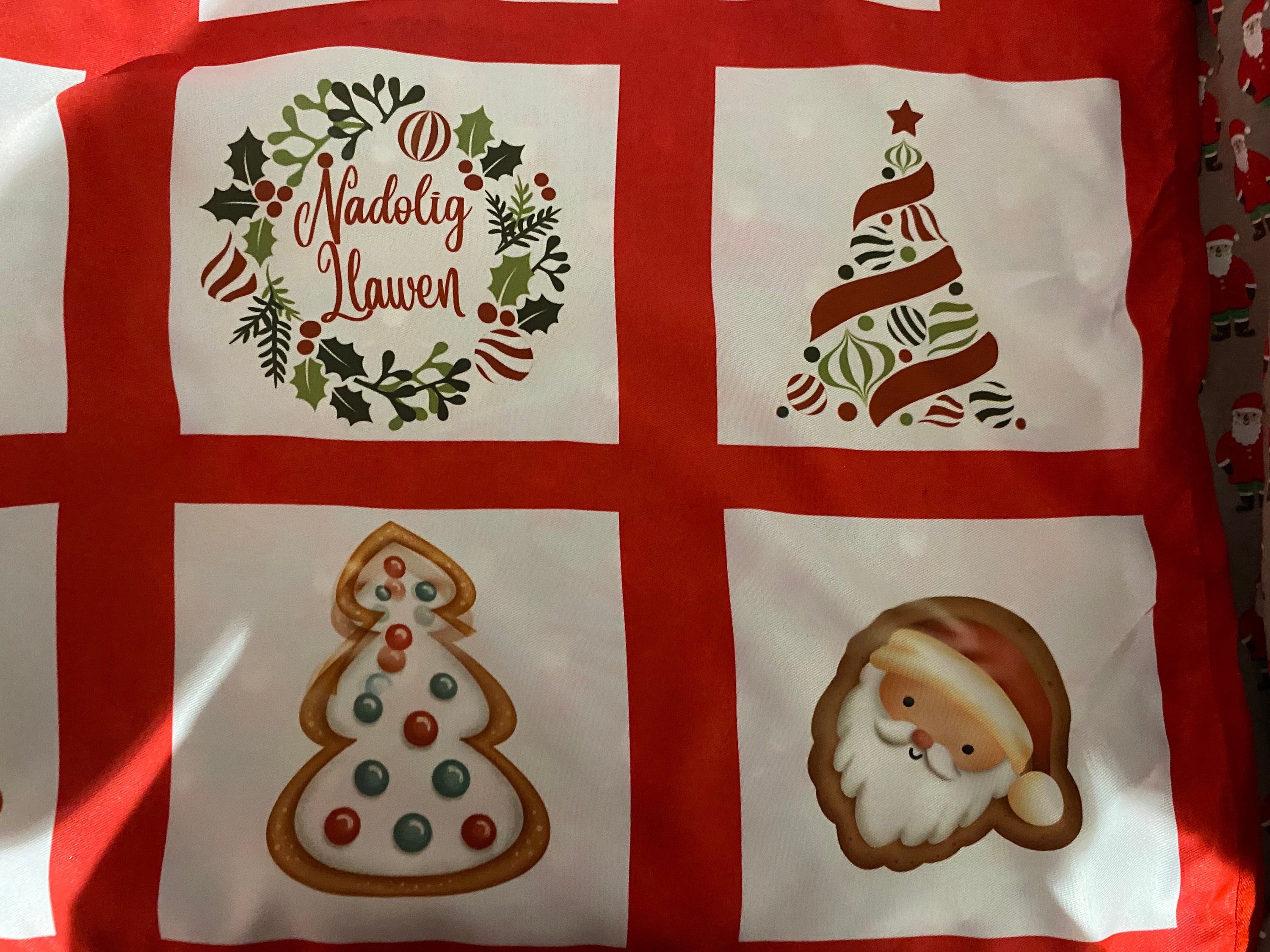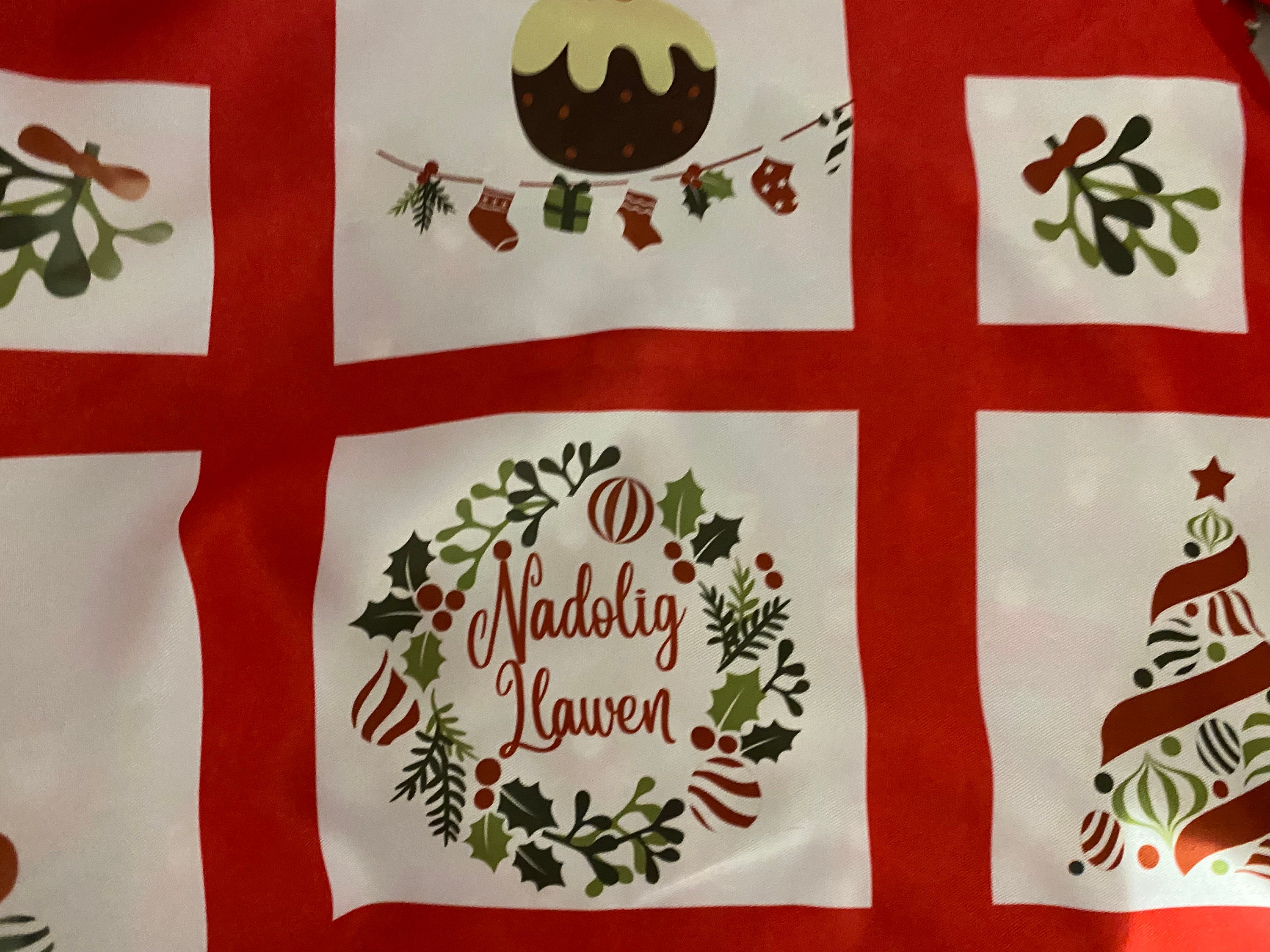 Ffedog efo dyluniadau nadolig / Apron with Christmas designs .