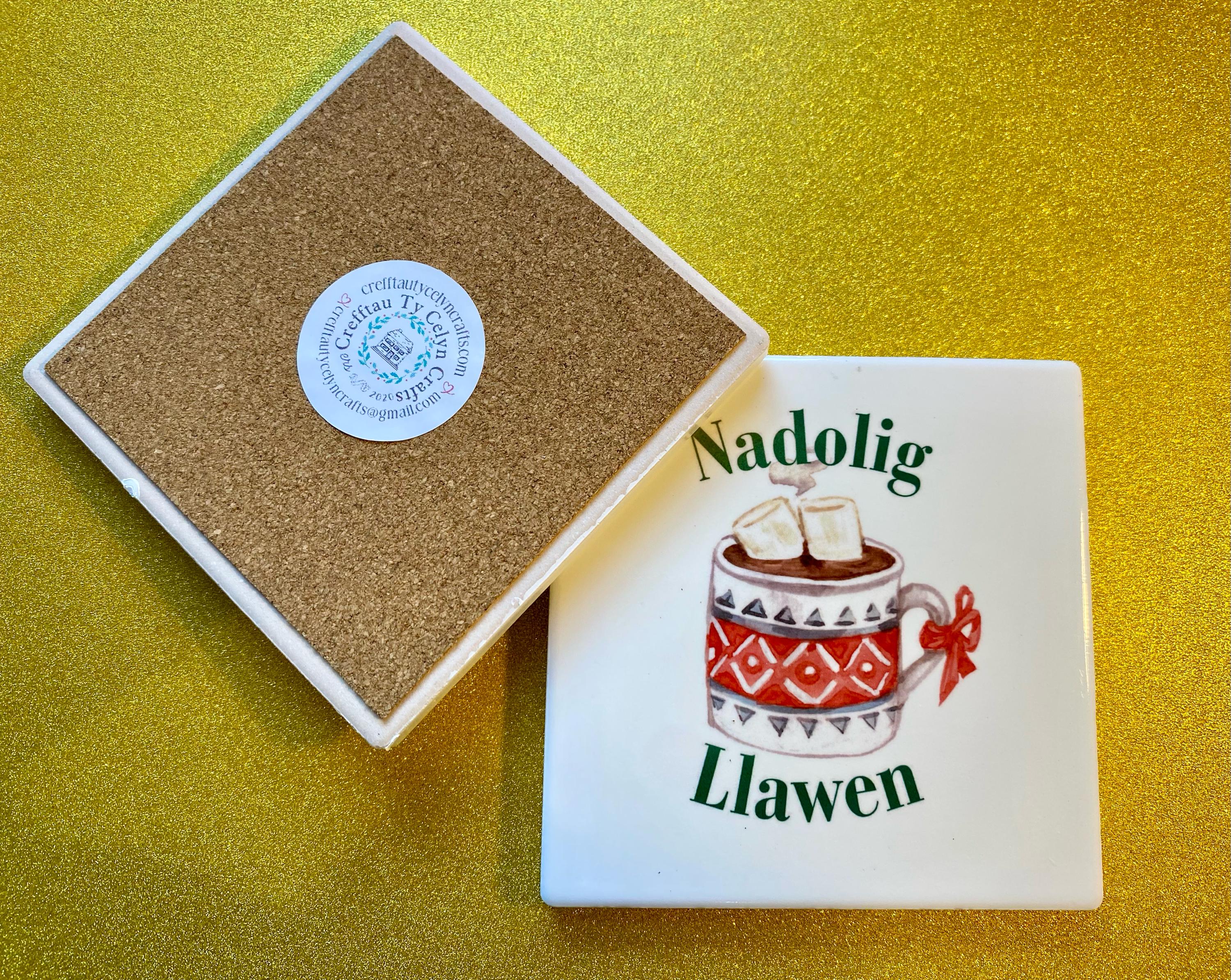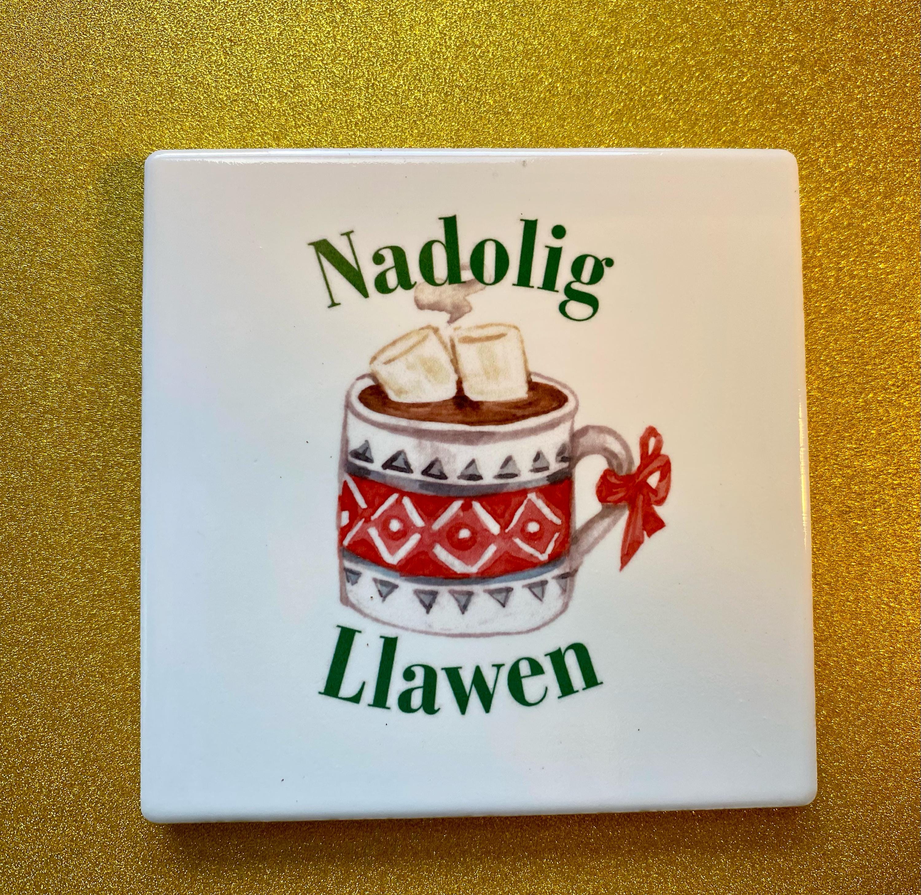Single /Set of 4 or Set of 6. Coaster seramig Nadolig Llawen / Nadolig Llawen(Merry Christmas) Coaster. Can be personalised on request
