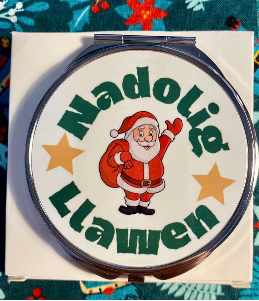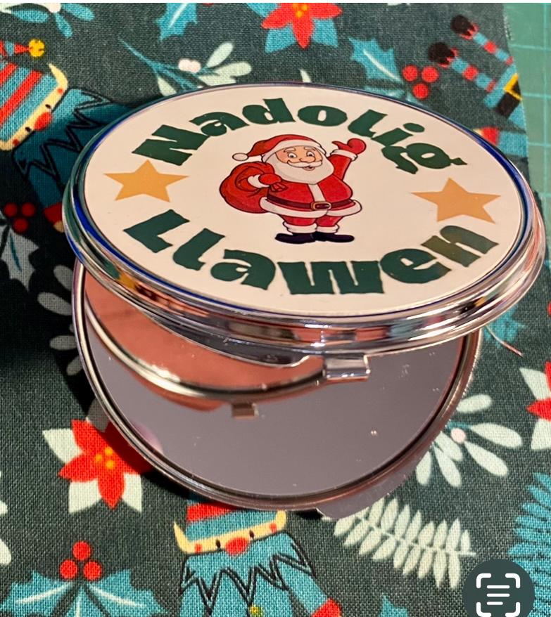 Drych bach 'compact' 'Nadolig Llawen' / 'Nadolig LLawen' compact double mirror(including box)