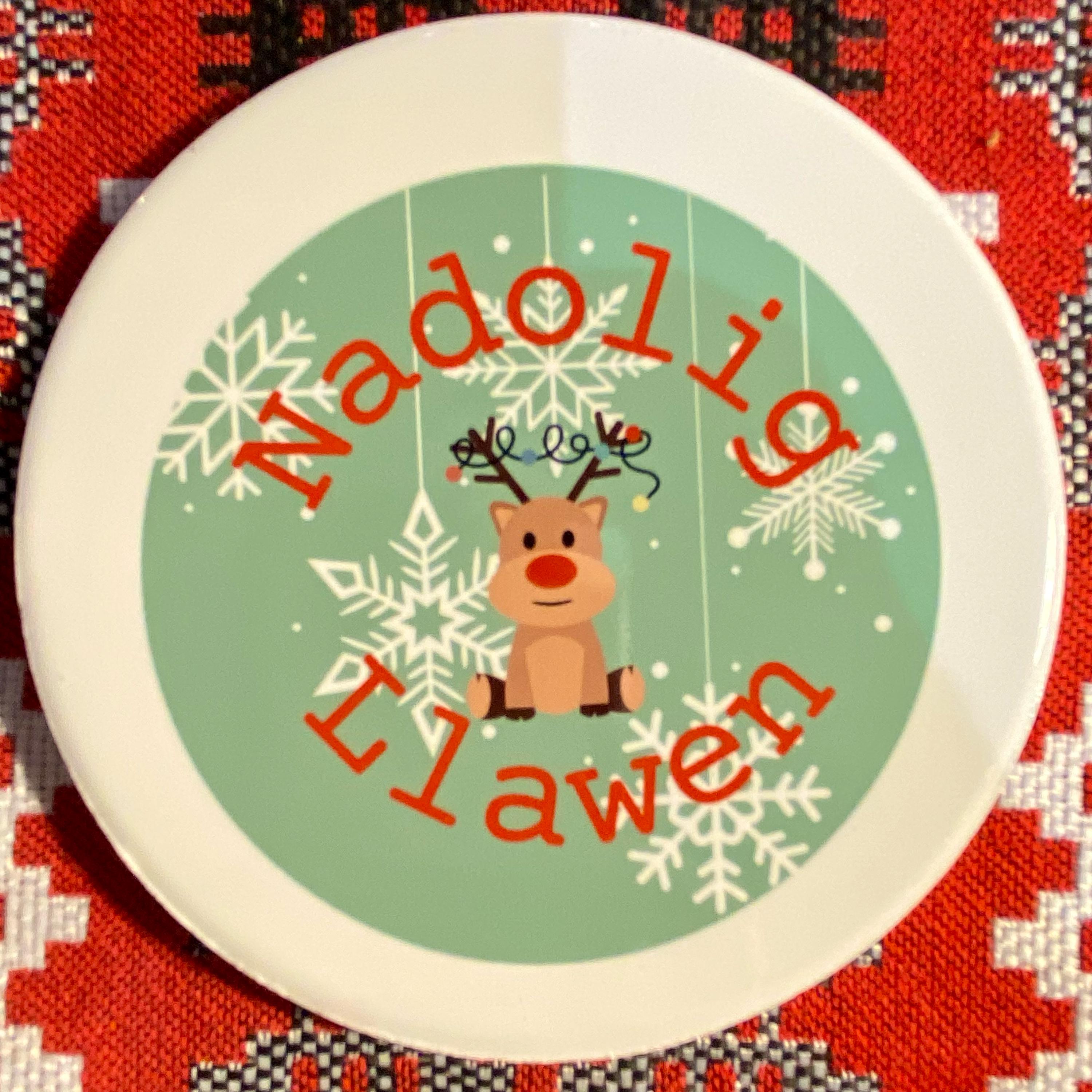 Coaster seramig efo dyluniad ‘Nadolig Llawen’ wedi syblimeiddio arno.