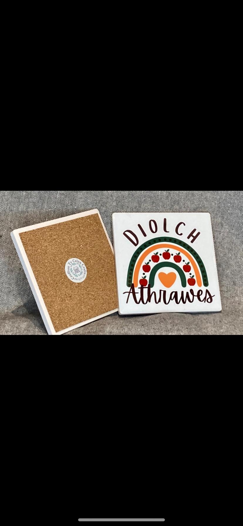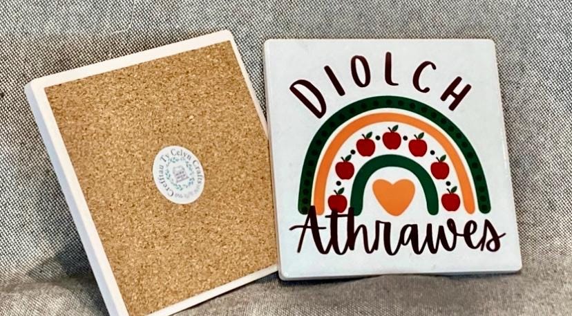 Diolch Athrawes ceramic coaster (can be personalised) Welsh ‘Thank you teacher’ ceramic coaster