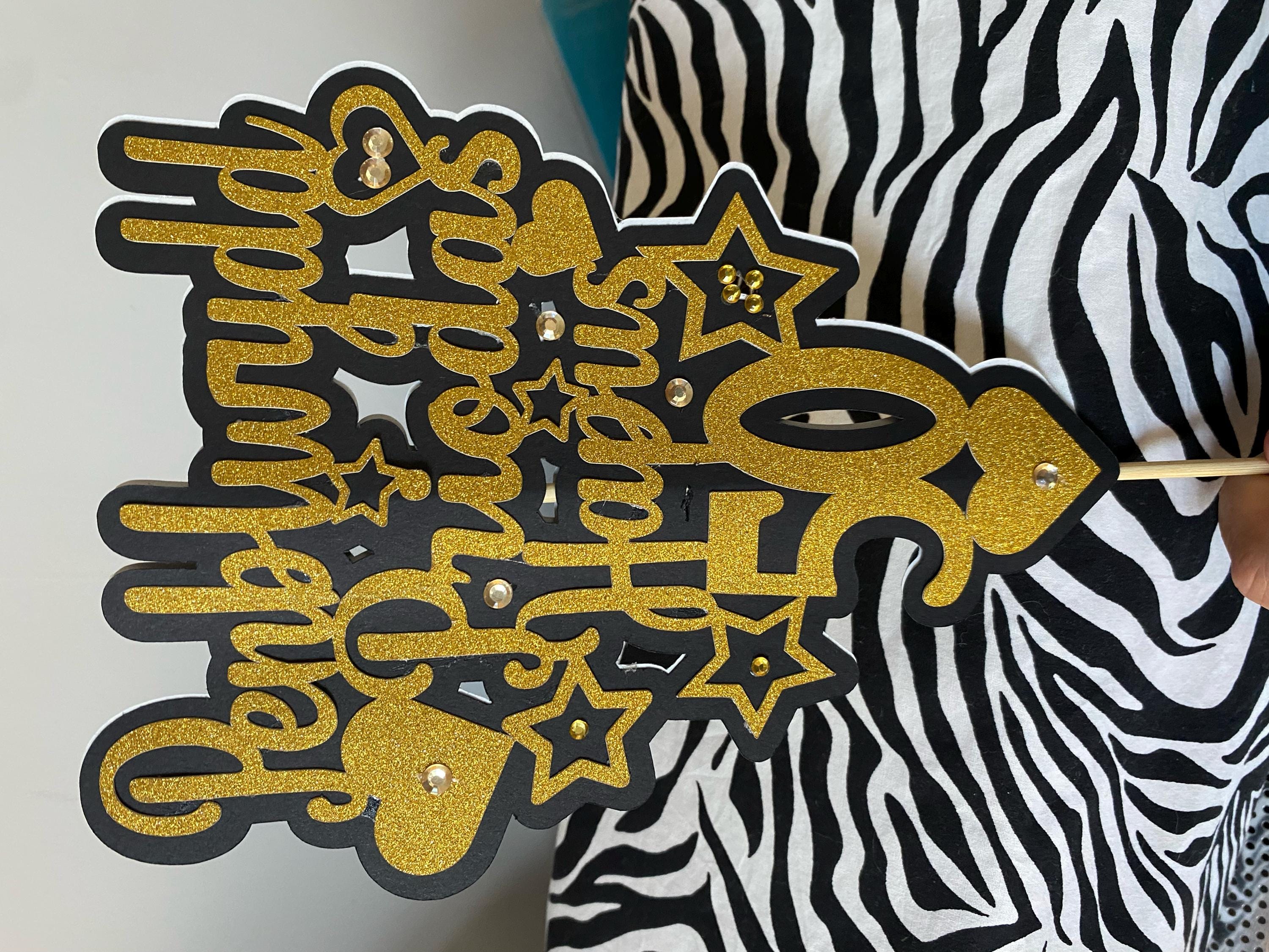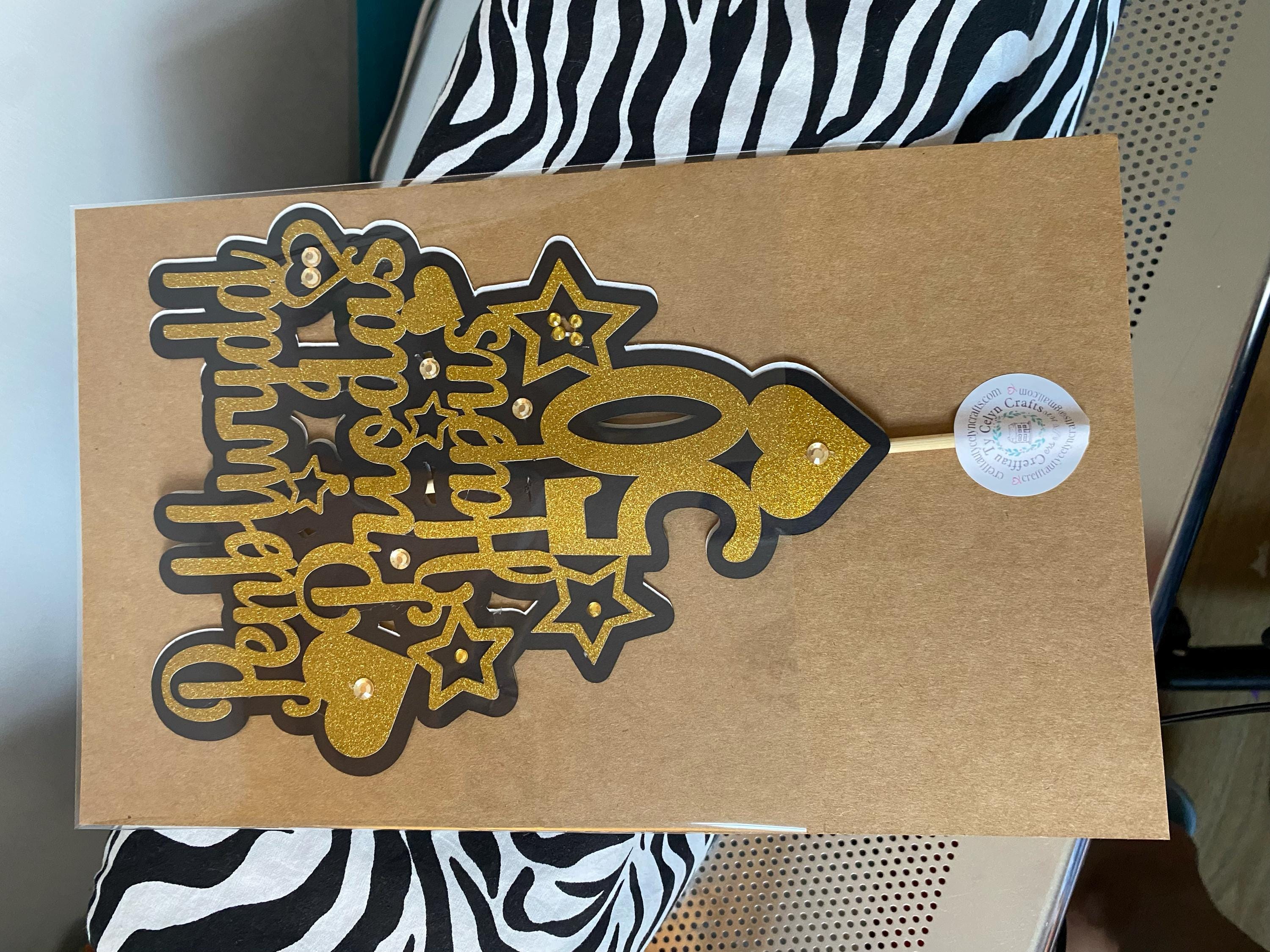 ‘Topper’cacen PENBLWYDD PRIODAS HAPUS, a gellir ei bersonaleiddio, neu rhif y flwyddyn.