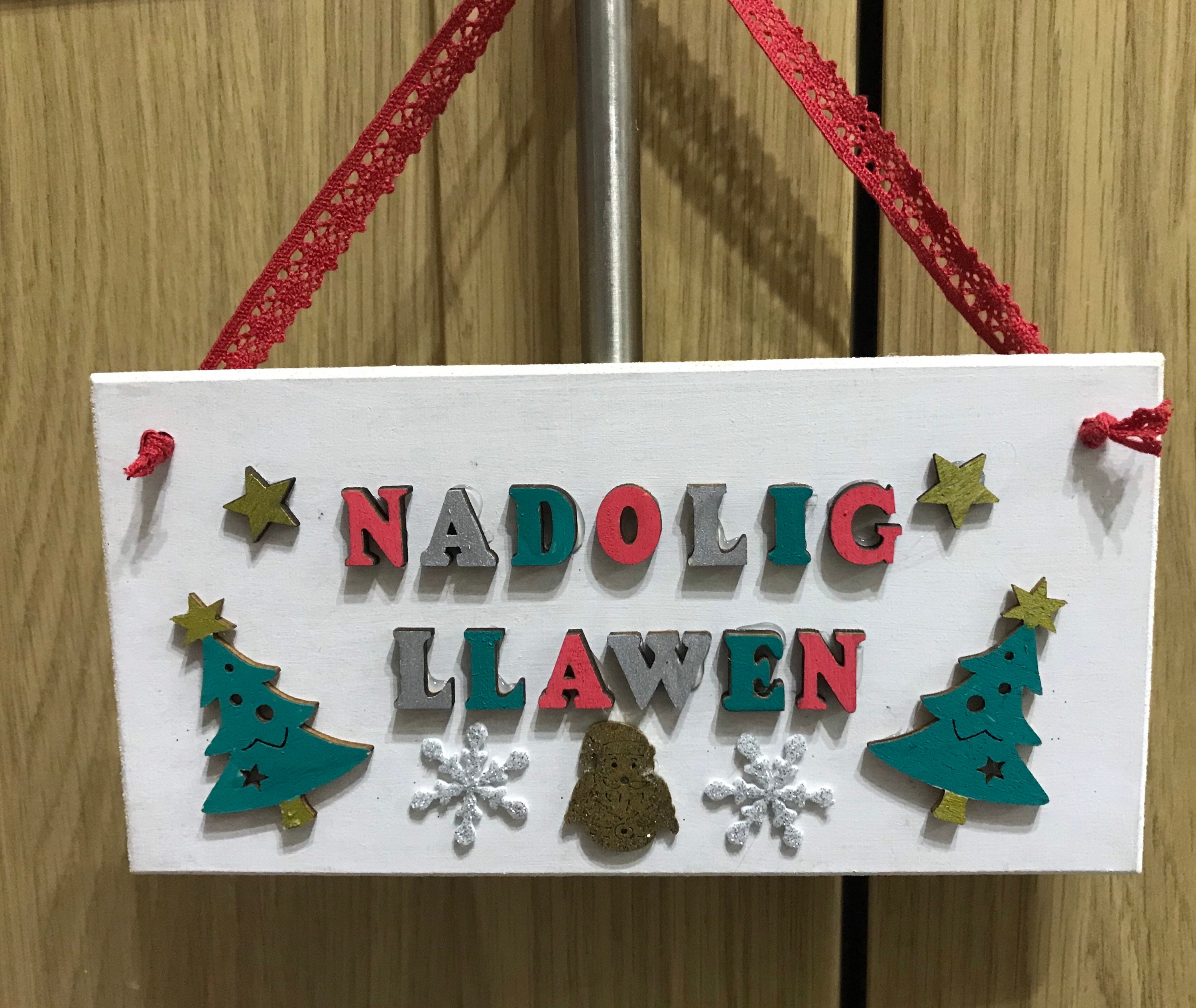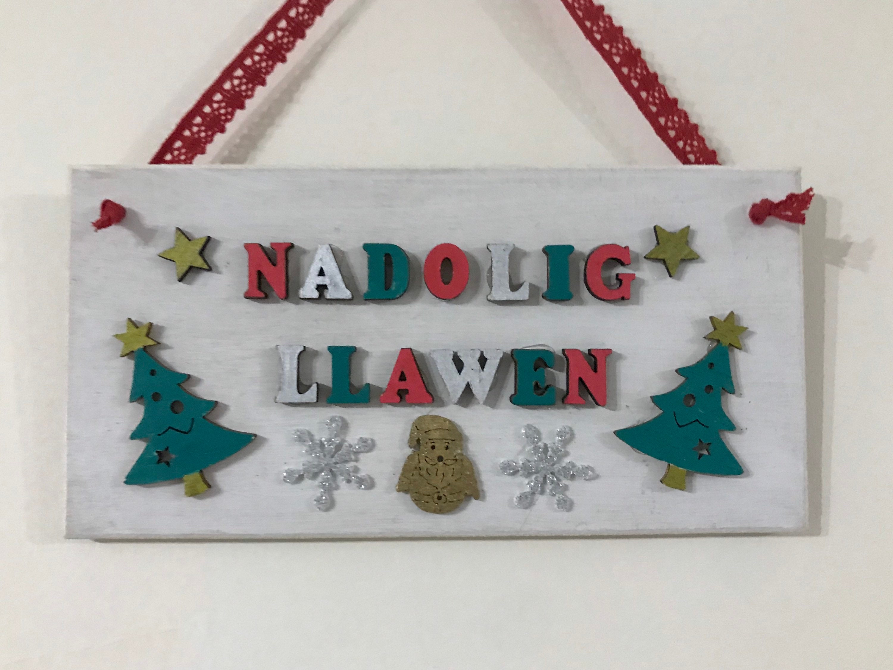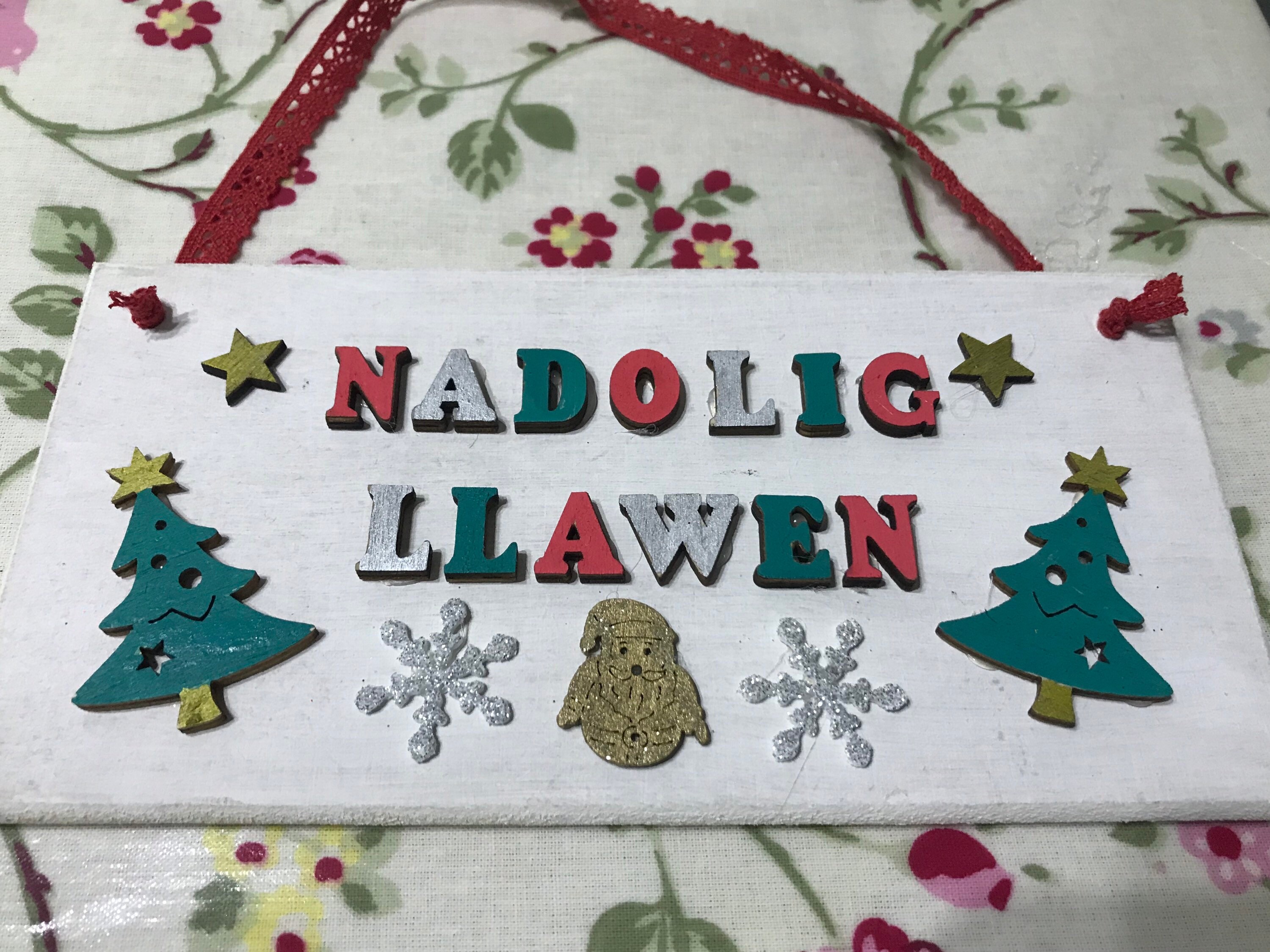 Plac NADOLIG LLAWEN pren / Wooden Welsh Merry Christmas plaque.