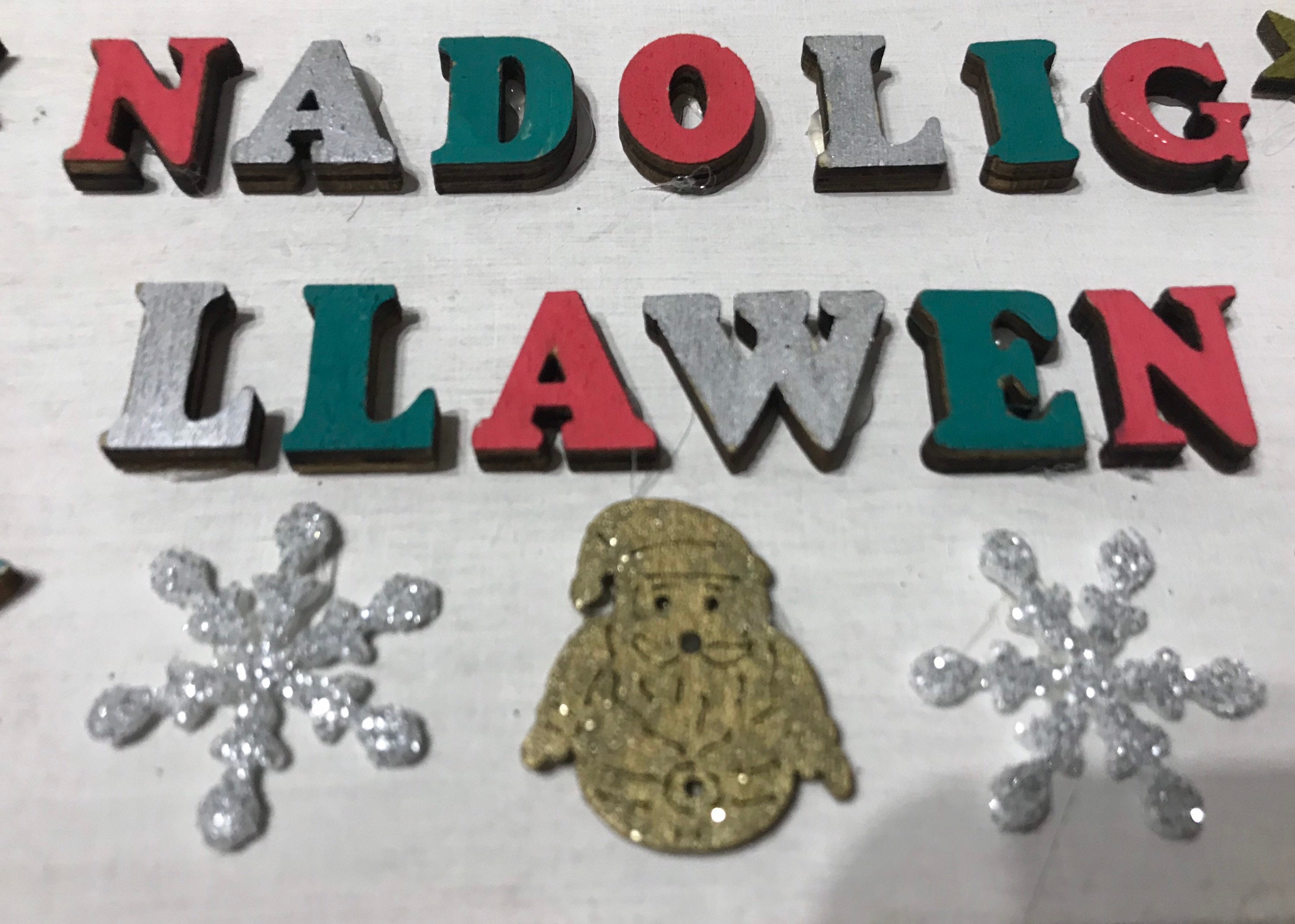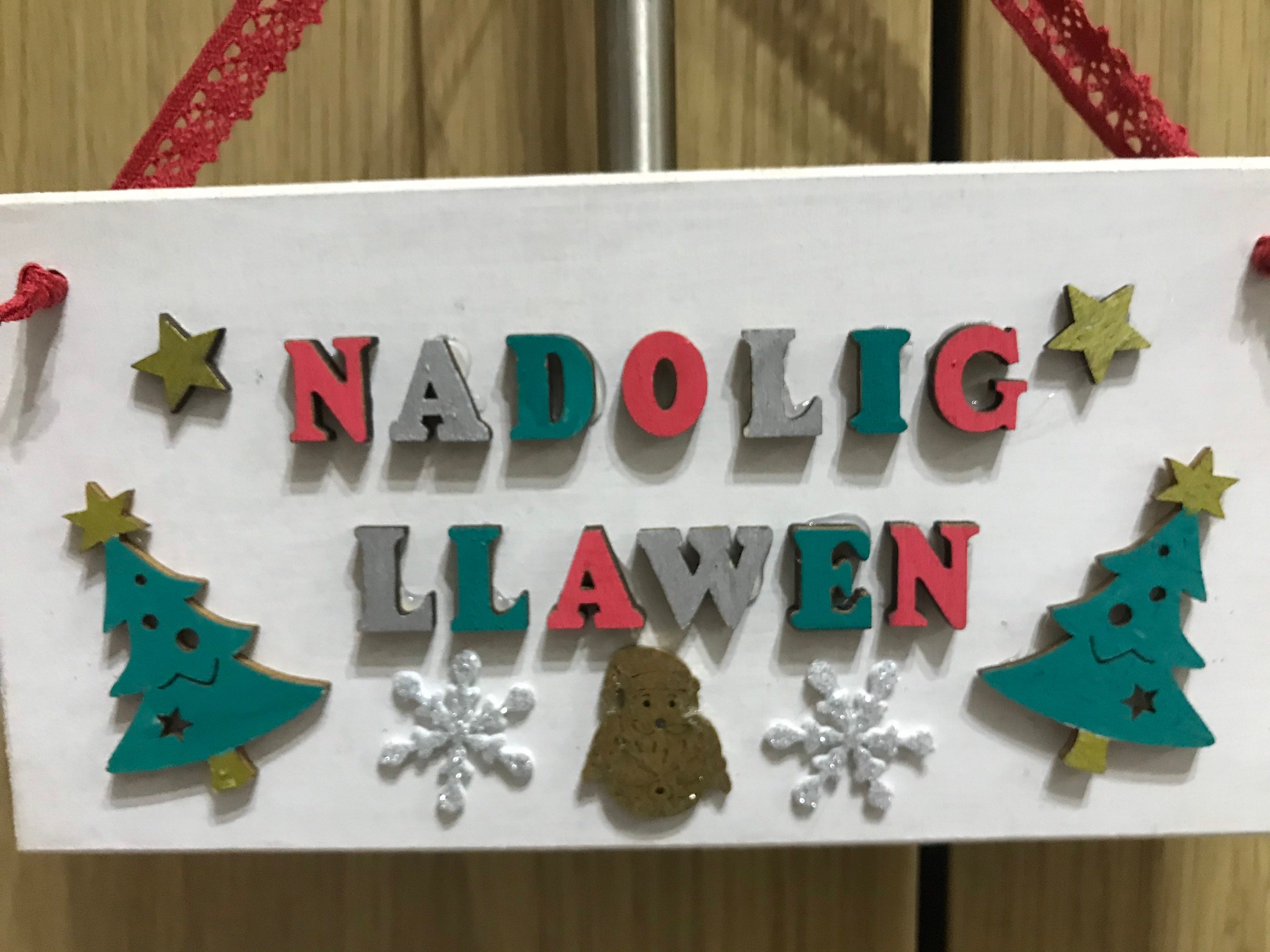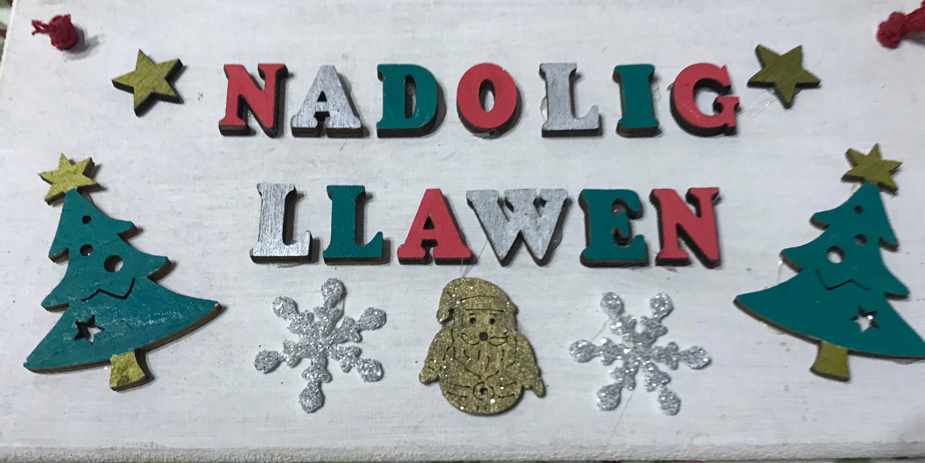 Plac NADOLIG LLAWEN pren / Wooden Welsh Merry Christmas plaque.
