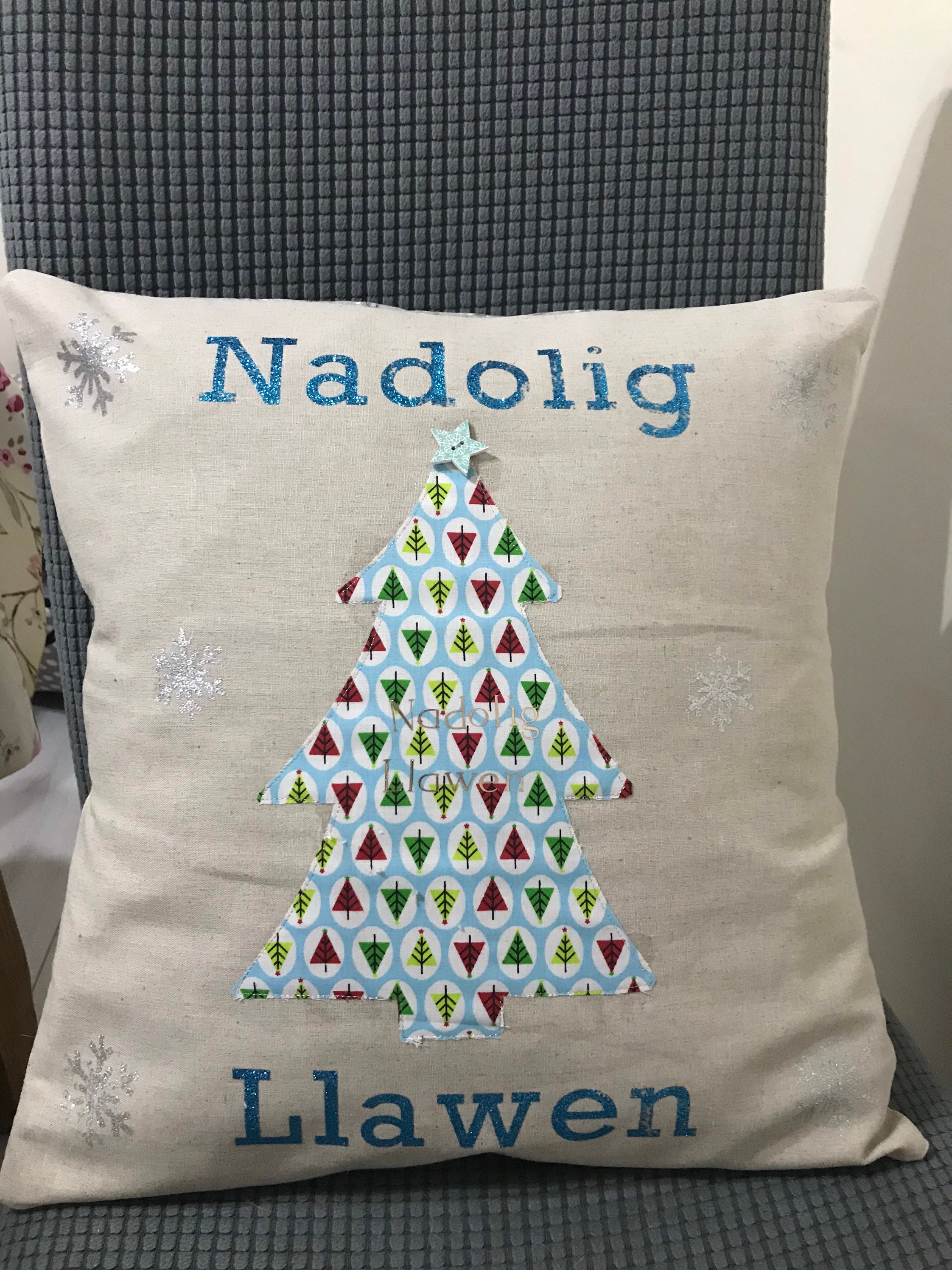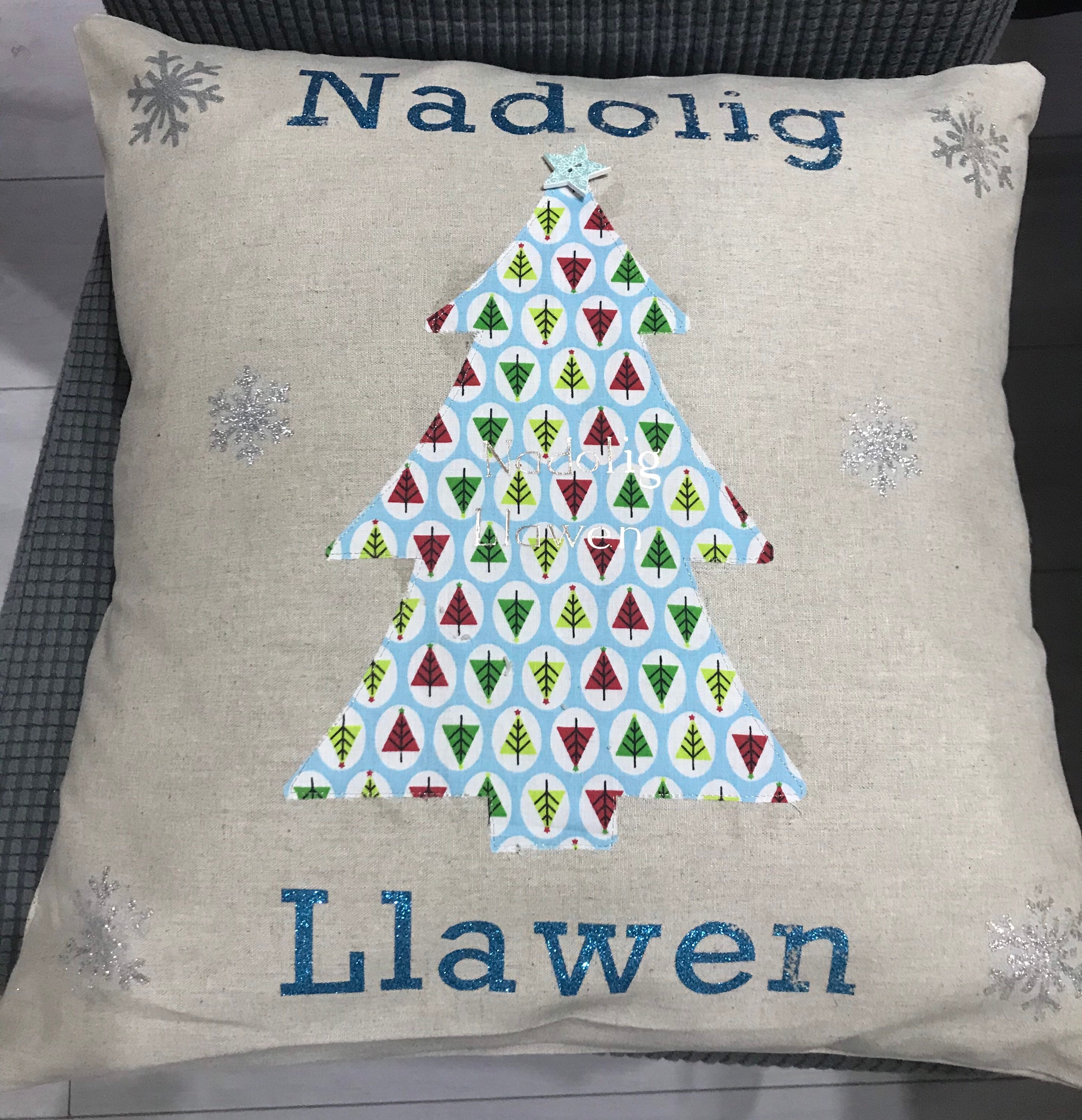 Clustog / Cushion Nadolig Llawen (or Merry Christmas available) Includes cushion cover & insert 16inch
