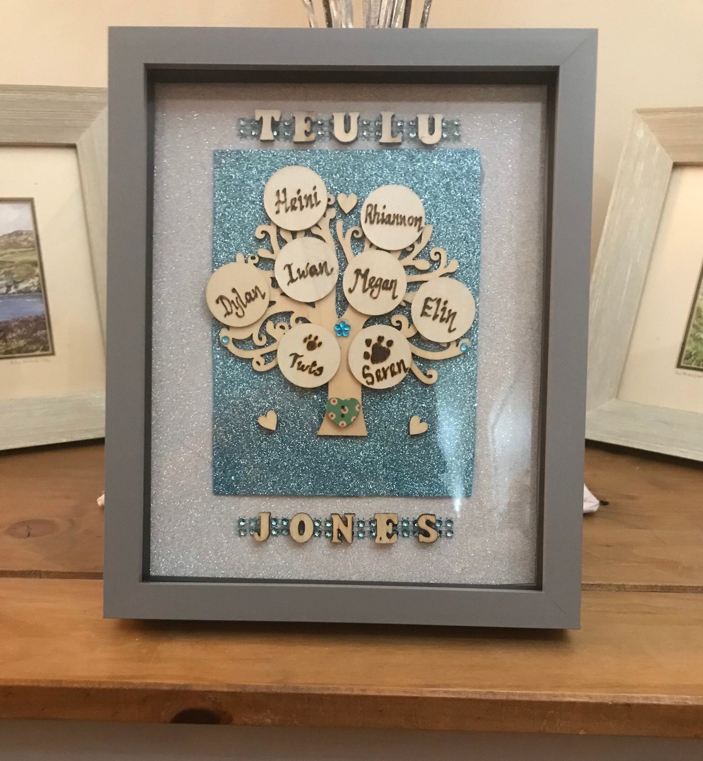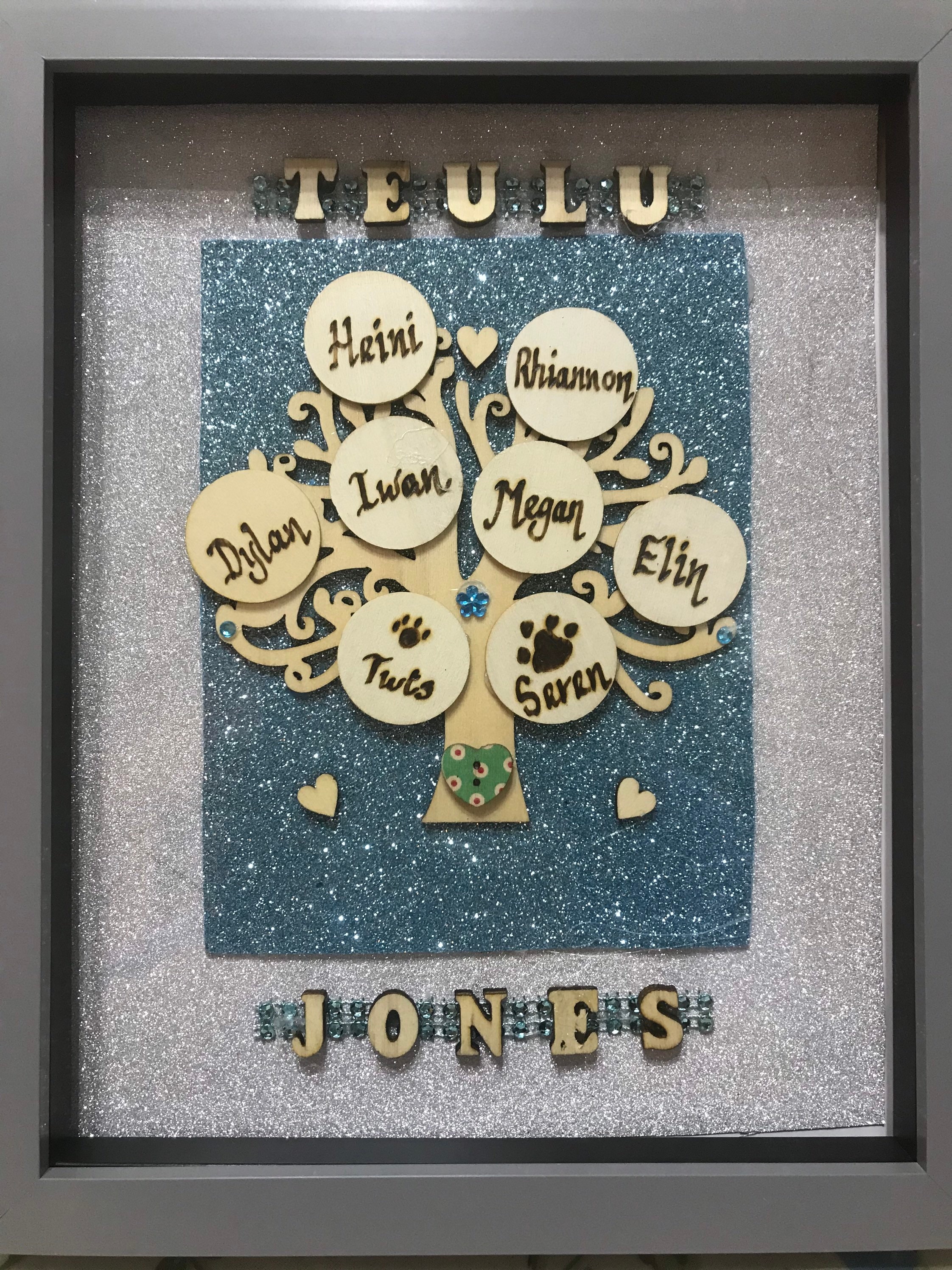 Hefyd mewn Pren rhoddir enw e.g ‘Teulu Jones’